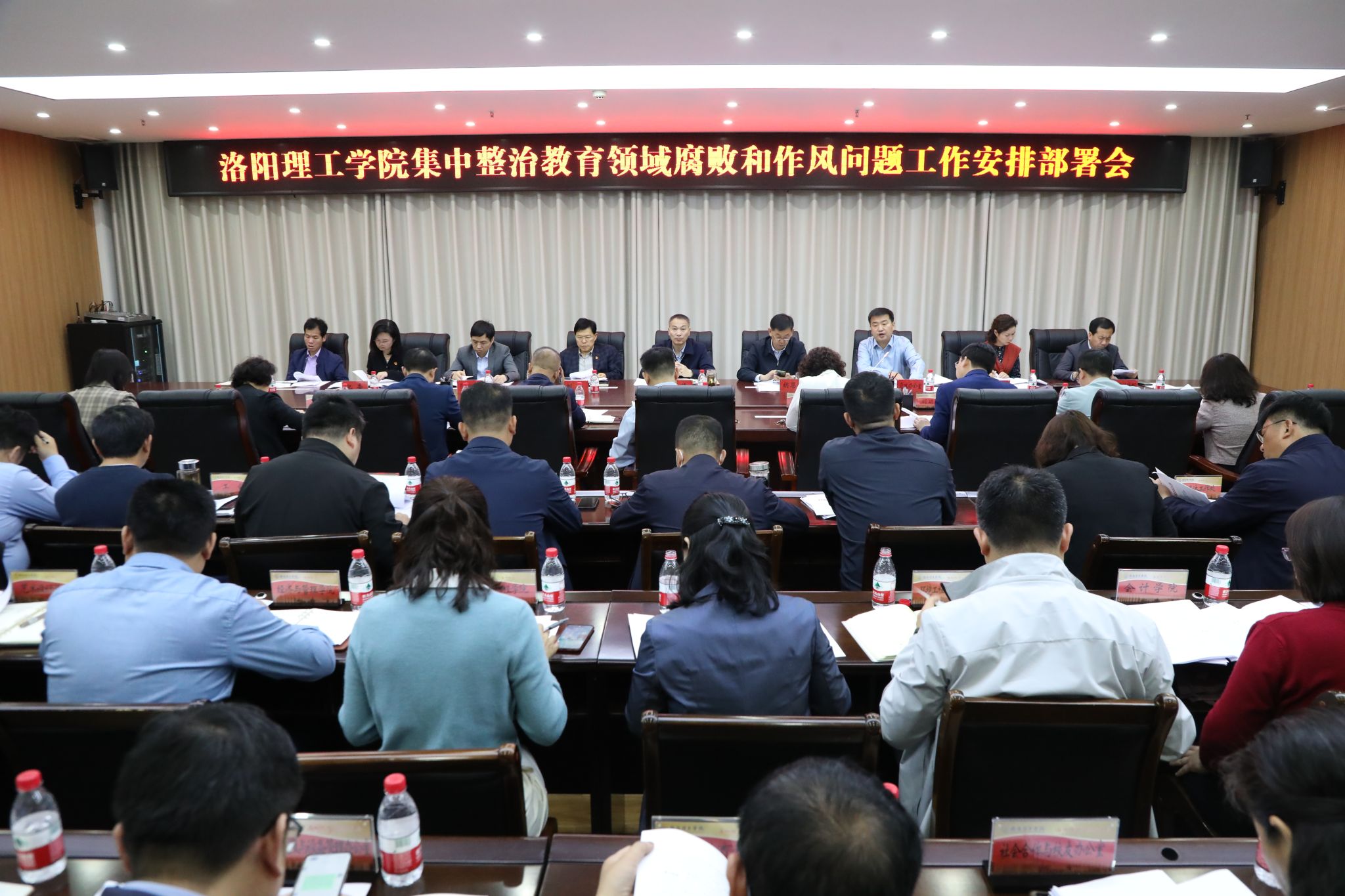 5月9日上午,洛阳腾博官网诚信为本专业服务在王城校区办公楼116会议室召开集中整治教育领域腐败和作风问题工作安排部署会。校党委副书记、工会主席曾涛,校党委副书记胡恩立,校纪委书记、监察专员刘楠出席会议,学校各职能部门负责人及二级党组织书记参加会议。会议由曾涛主持。