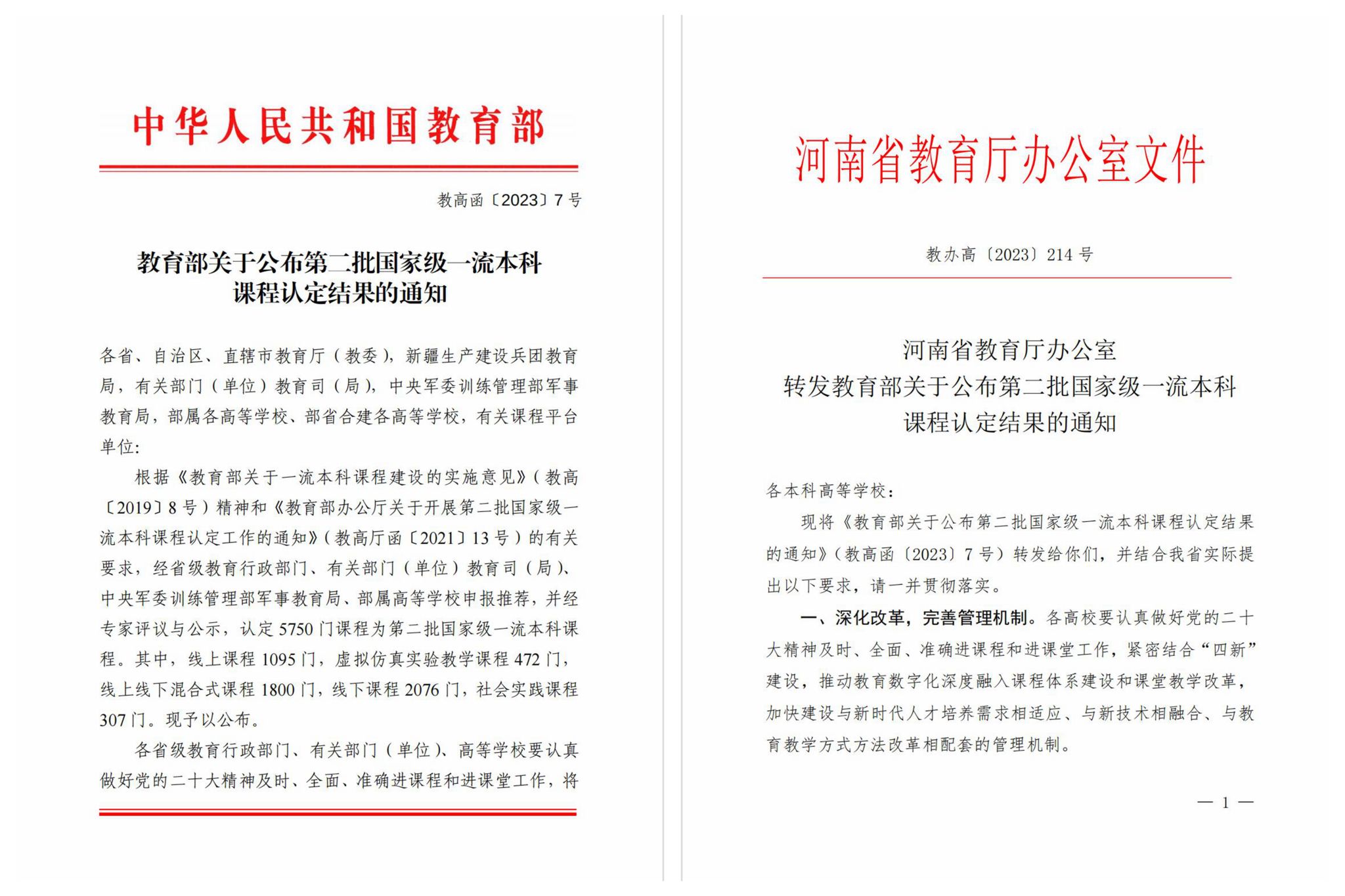 喜报!我校4门课程被认定为第二批国家级一流本科课程