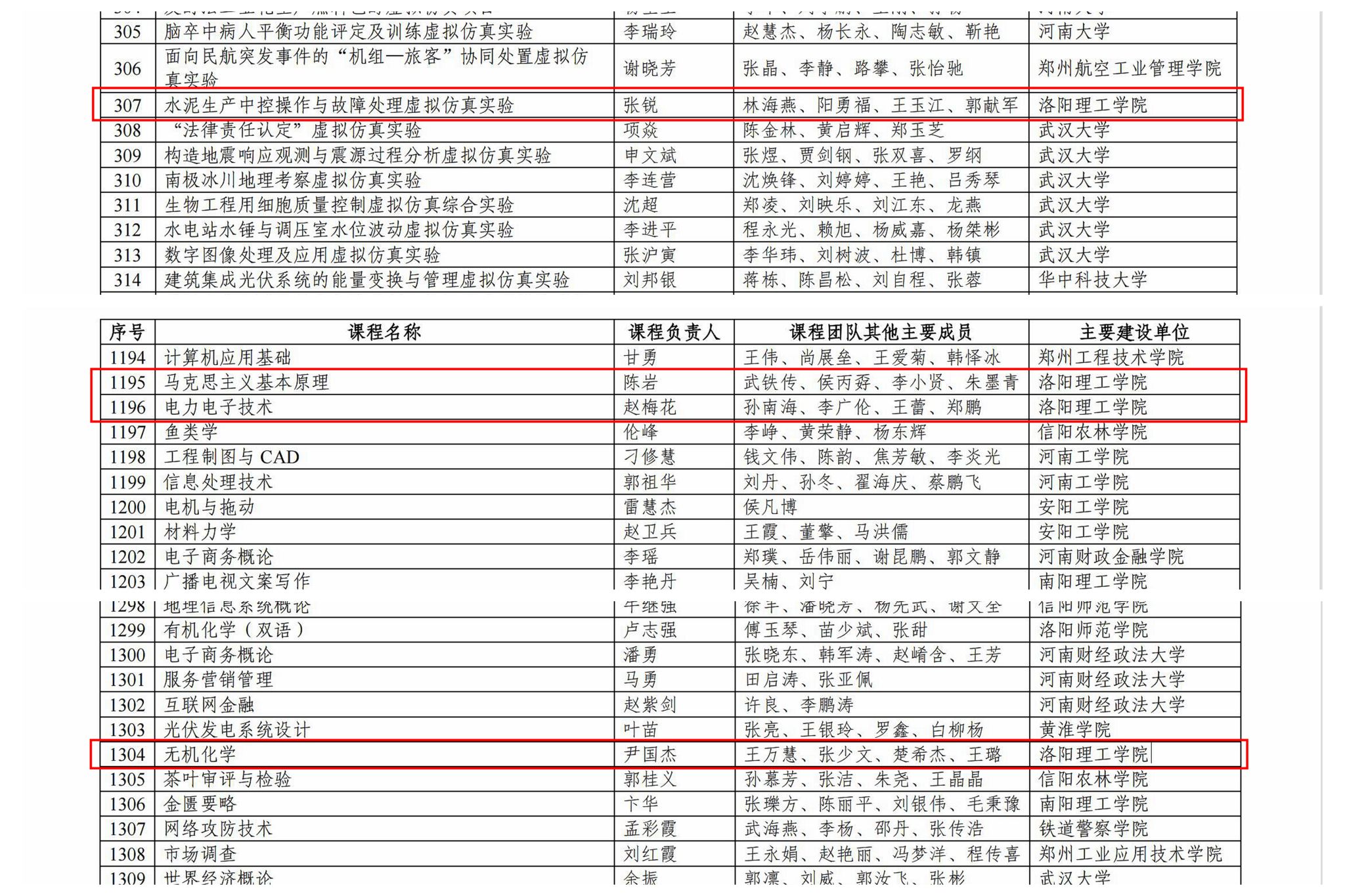 近日,河南省教育厅下发《河南省教育厅办公室转发教育部关于公布第二批国家级一流本科课程认定结果的通知》(教办高〔2023〕214号),公布了第二批国家级一流本科课程认定结果。我校张锐教授负责的《水泥生产中控操作与故障处理虚拟仿真实验》被认定为虚拟仿真实验教学一流课程;陈岩教授负责的《马克思主义基本原理》被认定为线上线下混合式一流课程;赵梅花教授负责的《电力电子技术》被认定为线上线下混合式一流课程;尹国杰教授负责的《无机化学》被认定为线下一流课程。