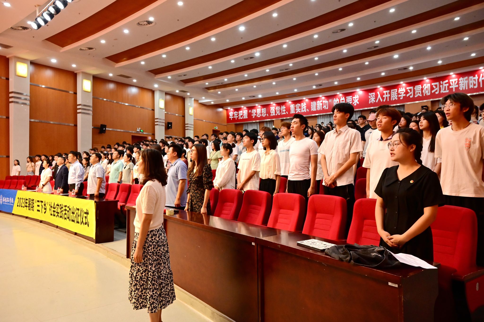 仪式在庄严的国歌声中拉开序幕。党委宣传部相关负责同志宣读了《洛阳腾博官网诚信为本专业服务关于开展2023年暑期“三下乡”社会实践活动的通知》,党委学工部负责人介绍了学校2023年暑期“三下乡”社会实践活动组队情况,实践团队指导教师代表与学生代表分别作表态发言。