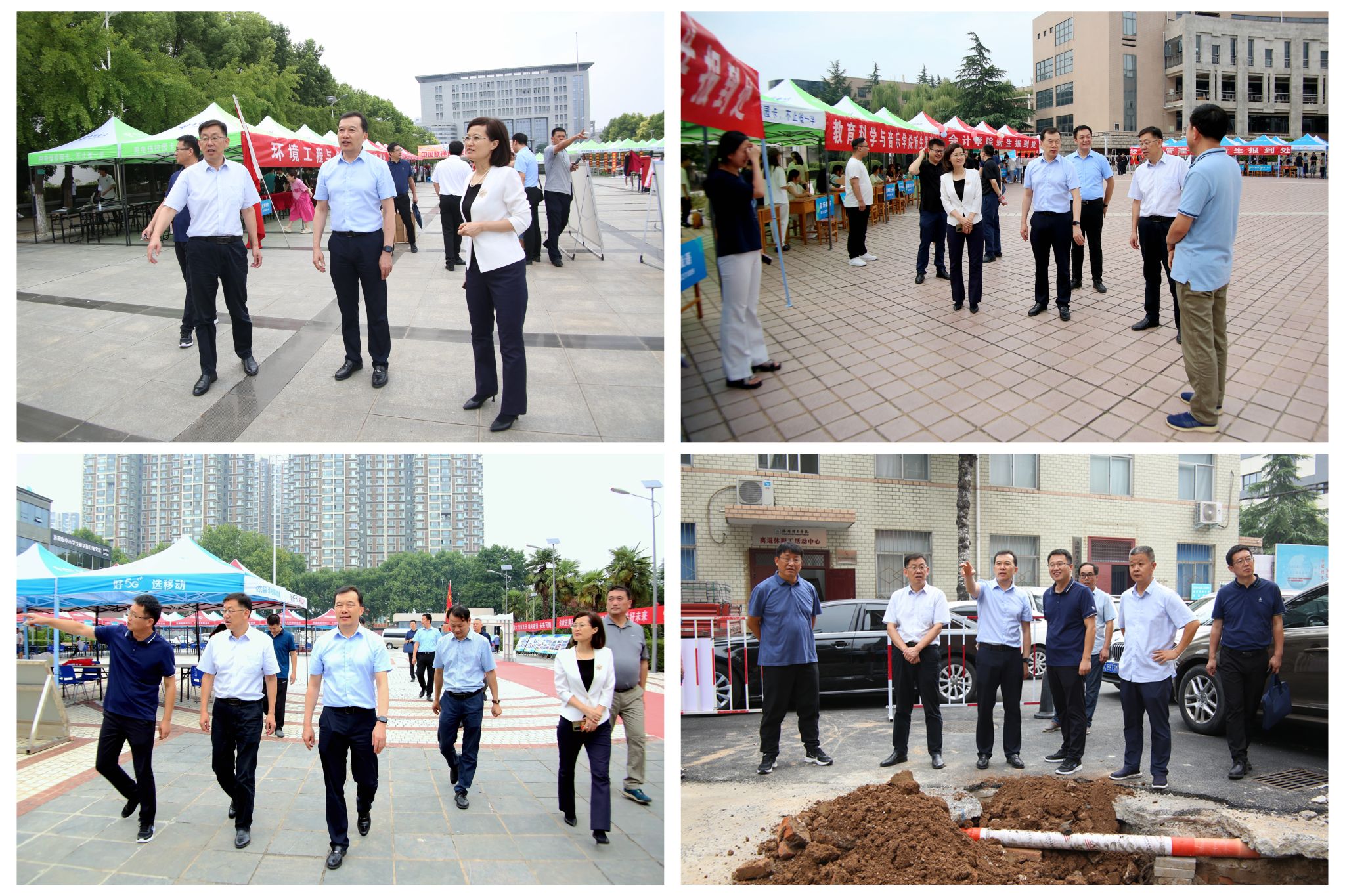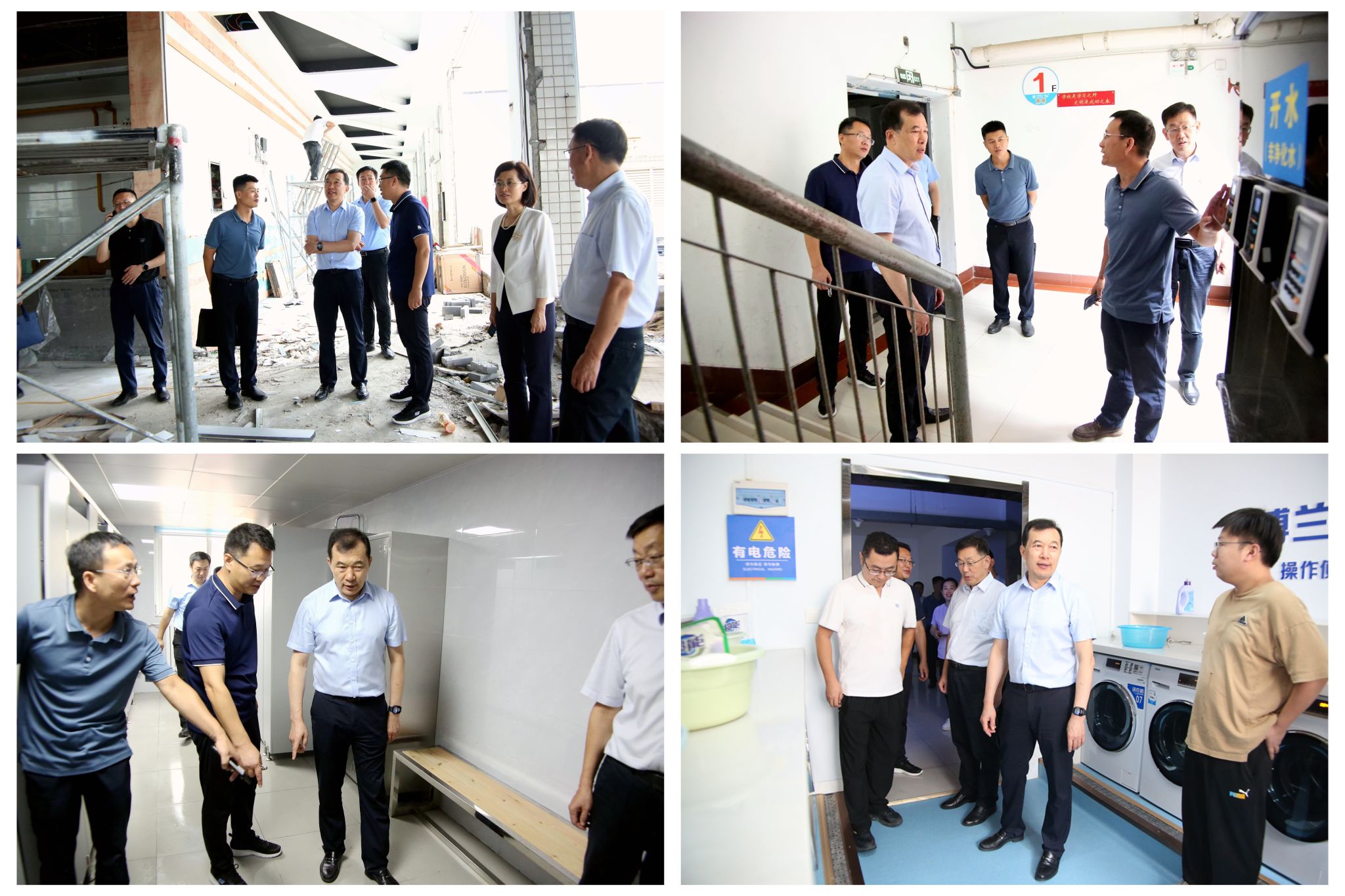 校领导一行先后来到王城校区迎新现场、公共教学楼、铭苑二餐厅、铭四学生公寓、开元校区子衿餐厅、九都校区桢苑餐厅等学习和生活场所,对新学期学校迎新准备、师生餐饮、生活设施、教学组织、安全保卫等情况进行了全面深入的检查,重点查看了学生公寓洗浴间改造项目、洗衣房提升项目和餐厅改造提升项目的进展情况。