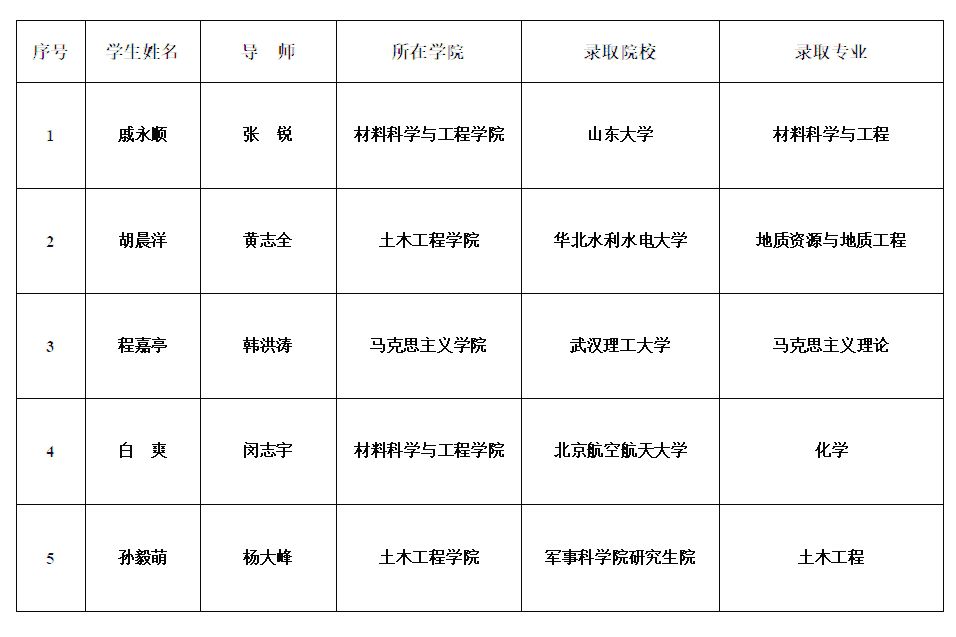 我校5名联合培养硕士研究生取得博士研究生录取通知书