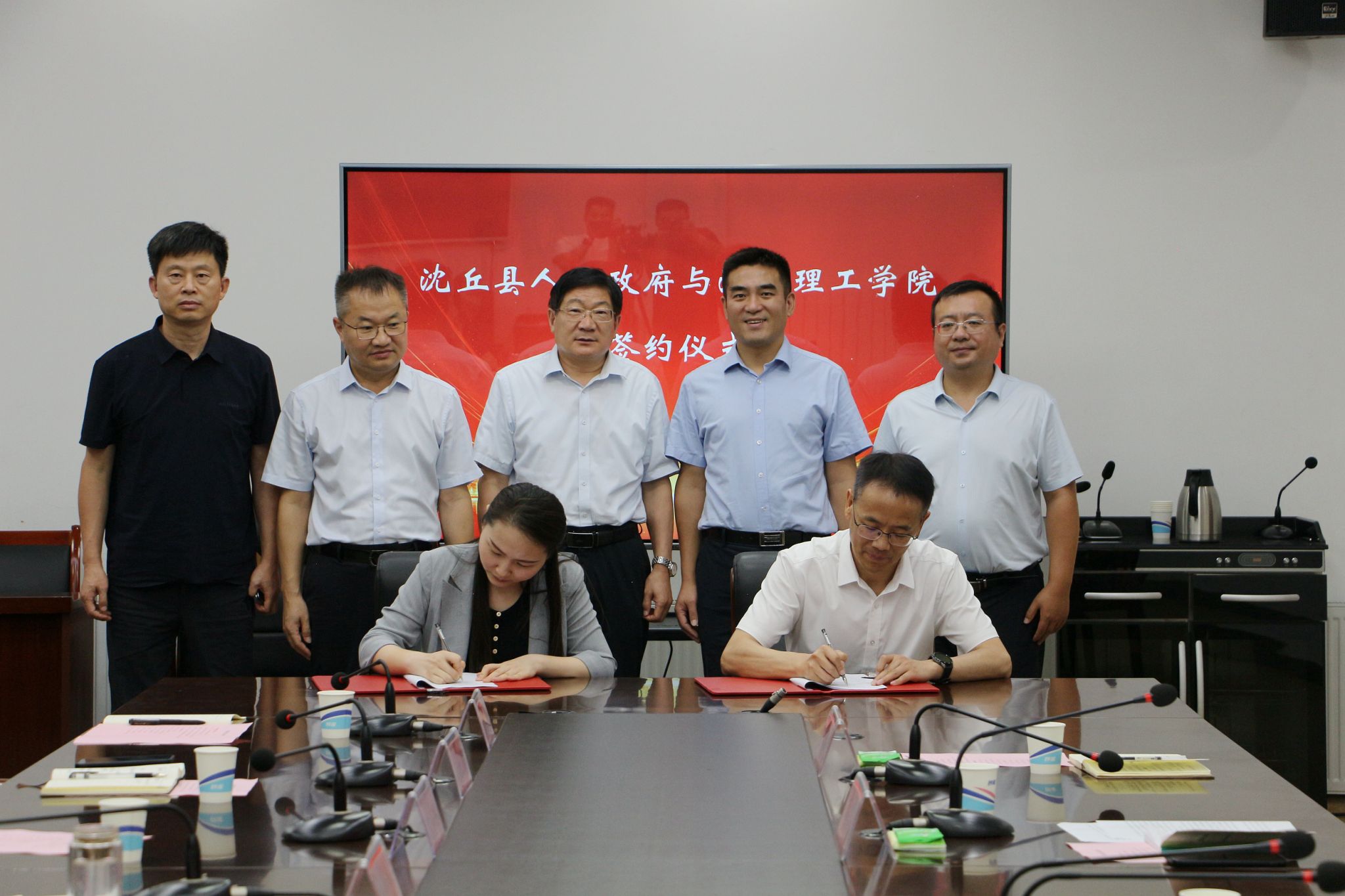 为深化校地合作,推进产教融合,促进学校事业高质量发展,7月29日,党委书记卢志文带队到沈丘县调研交流。沈丘县人民政府县长余长坤、副县长刘婷婷、开发区管委会副主任王志明,我校副校长上官林建等出席会议。