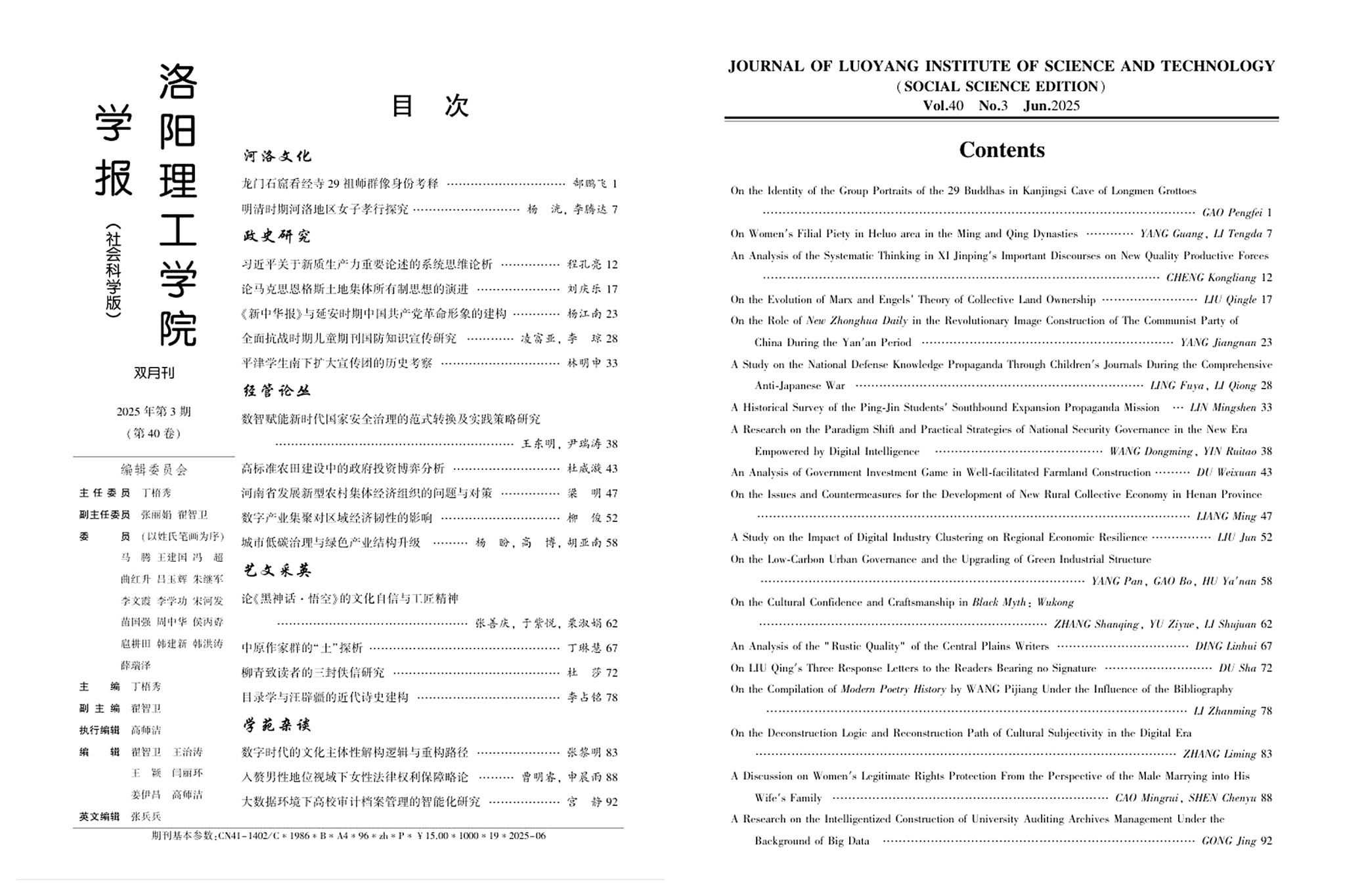 2025年6月23日,《洛阳腾博官网诚信为本专业服务学报(社会科学版)》2025年第3期出版。本期共刊发学术论文19篇,为做好学术出版内容传播,现将论文的题目和摘要等内容展示。