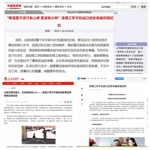 1.中国教育网,2025年7月18日,《“眼泪里不该只有心疼 更该有火种”洛理工学子抗战口述史采编实践纪实》