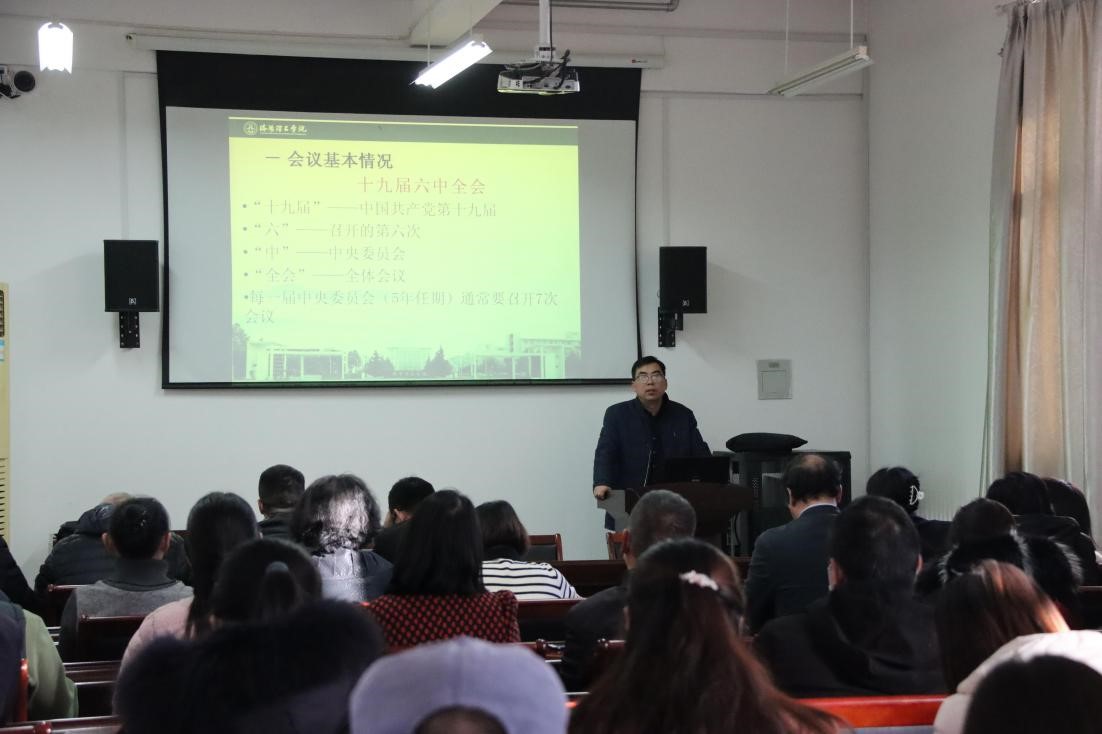 12月3日,图书馆全体馆员在图书馆501会议室参加学习党总支举行的十九届六中全会专题党课。
