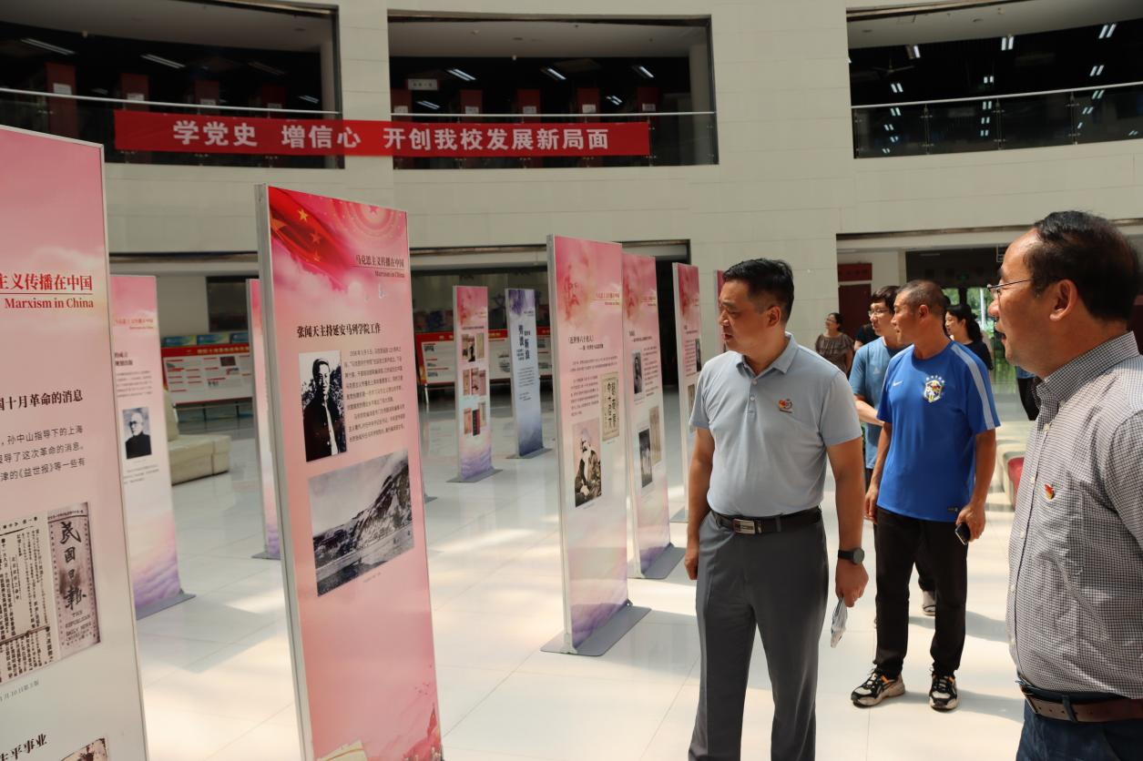 7月13日上午,图书馆全体党员同志在图书馆一楼大厅参观了开展的《马克思主义传播在中国——文献中的百年党建》“七一”专题展览。