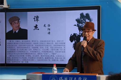 洛阳大学原副校长兼洛阳大学师范学院院长、现任中国辞赋家协会副主席、河南省诗词学会副会长谭杰先生、图书馆馆长雷海栋老师、图书馆副馆长褚艳红老师、校团委副书记张垓老师出席本次活动。
