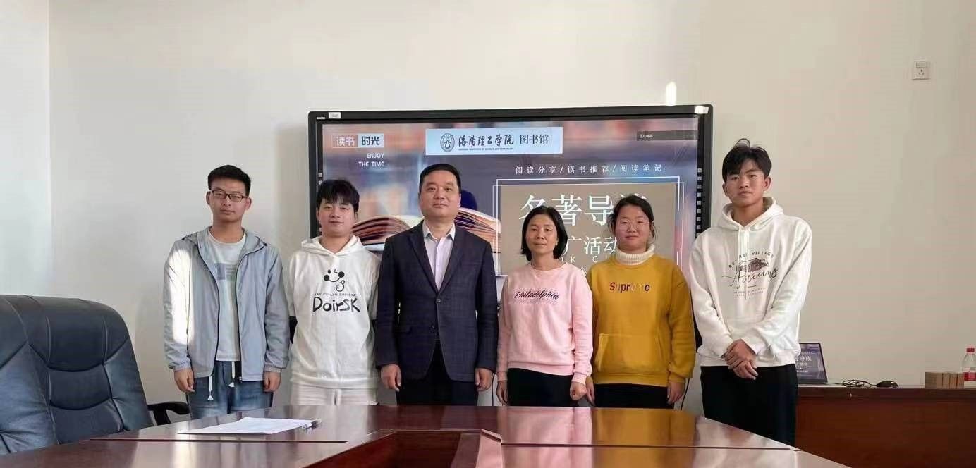 为全面贯彻落实党的二十大精神,增强我校学生人文底蕴,激发学生课外阅读兴趣,培养同学们多读书读好书的良好习惯, 2022年11月24日下午图书馆举行“书香校园、品读经典:名著导读活动”。此次活动采取线上线下相结合的方式进行,图书馆馆长雷海栋、副馆长褚艳红、流通服务部、阅览服务部老师参加活动。