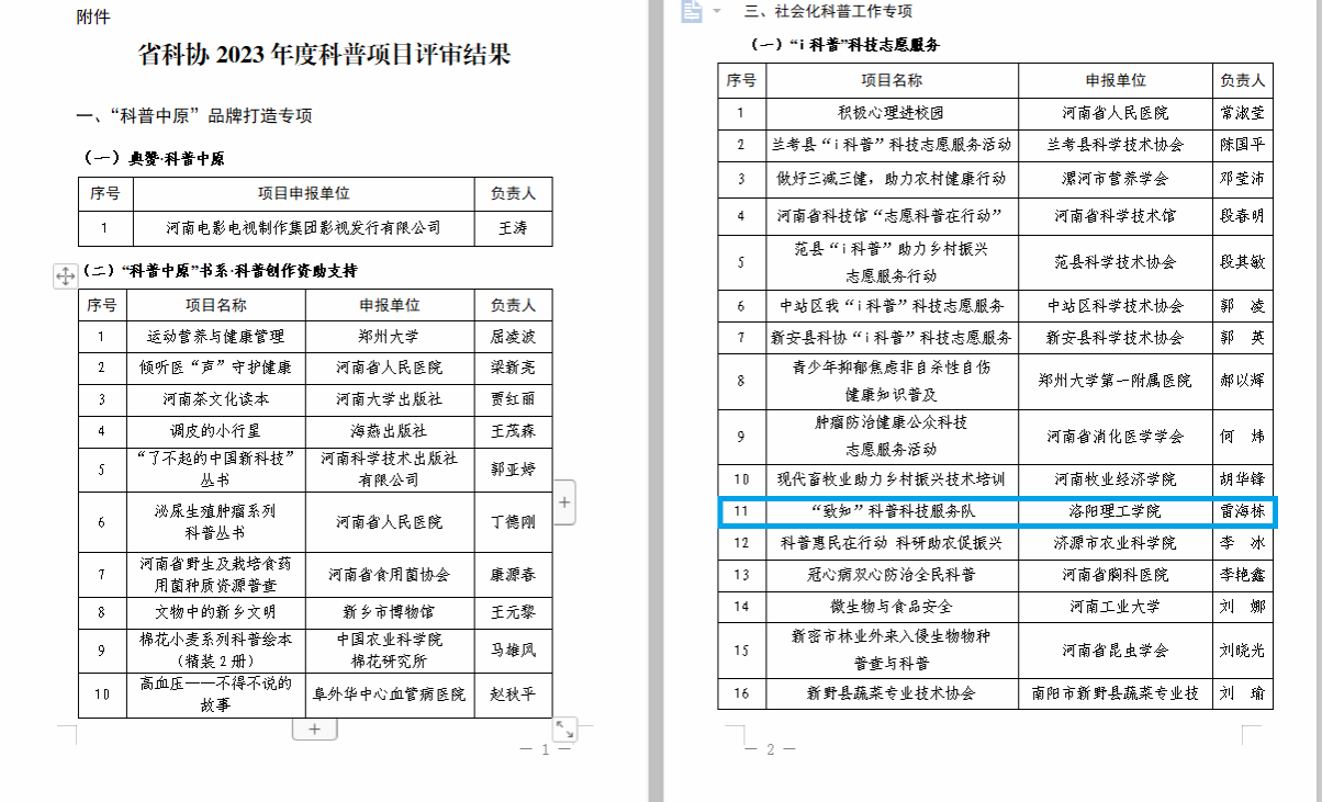 近日,我校图书馆主持申报的“致知”科普科技服务项目获省科协立项公示,这是我校图书馆科研服务能力提升和能力作风建设年活动的又一突破。