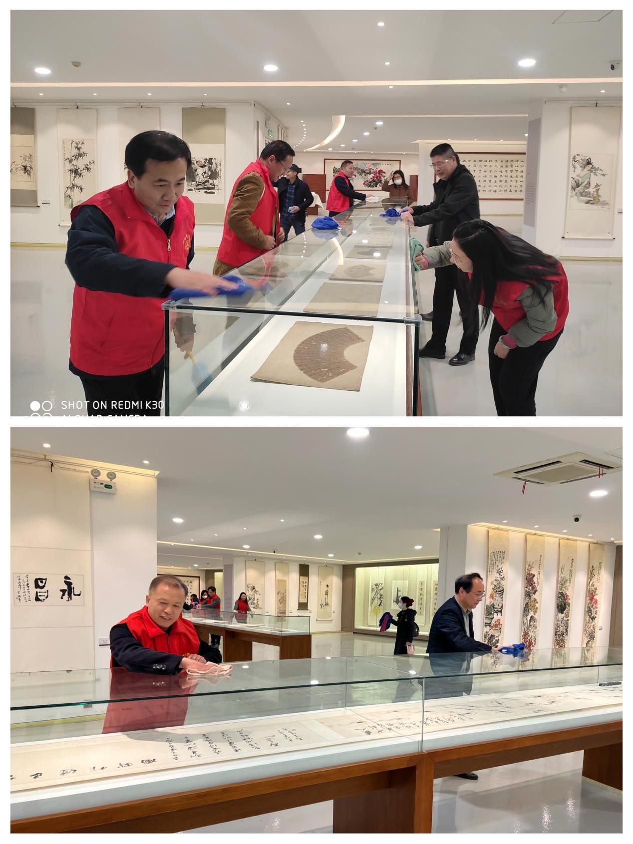 参加义务劳动的党员同志们发扬奉献精神,认真细致用抹布擦去玻璃展柜上的印渍,用鸡毛掸子弹去书画展品上的落尘,用拖把、扫帚清理展厅的犄角旮旯......。在对博物馆进行清洁打扫的同时,博物馆工作人员还穿插讲解了部分展品的艺术特点、文物价值,以及展品背后的历史知识和收藏典故。通过义务劳动和志愿者服务,党员同志们以自己的实际行动实践共产党员的先进性,诠释共产党员先进性的真正含义,进一步树立起“一名党员、一面旗帜”的良好形象,发挥了党员、干部模范带头作用。同时也深刻把握雷锋精神的时代内涵,增强了党支部的凝聚力和战斗力,让雷锋精神在新时代绽放更加璀璨的光芒,为实现高水平应用型大学的奋斗目标凝聚强大力量。
