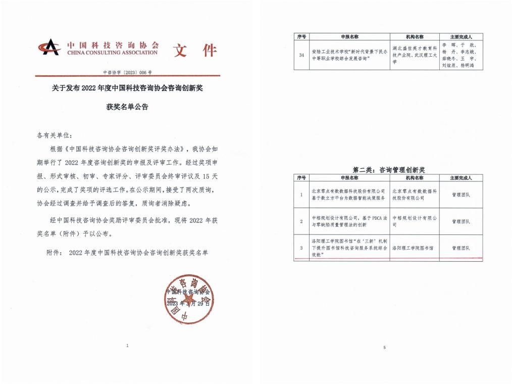 为提高我国咨询服务水平,激励自主创新在咨询服务中的积极作用,推动我国咨询业的发展,中国科技咨询协会于2022年6月组织开展了“2022年度咨询协会咨询创新奖”的评审工作。