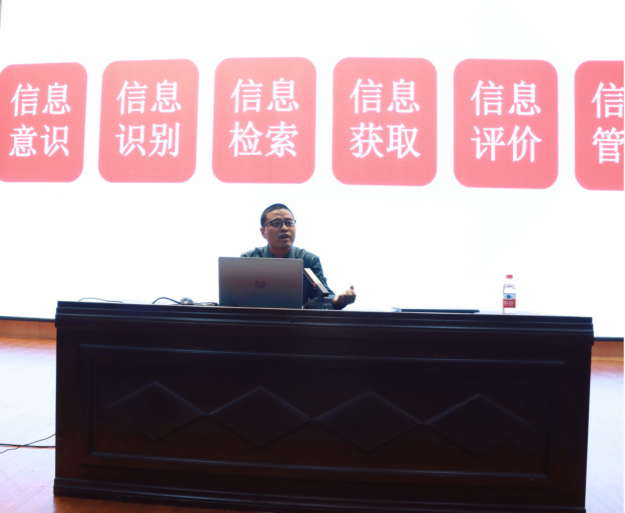 周建芳分别从信息意识、信息识别、信息检索、信息获取、信息评价、信息管理等方面展开讲解。周建芳首先强调,大学习四年同学们要通过多读书,读好书,来获取更多的信息,拓展自己获取信息的渠道,培养自己的信息意识。接着周建芳介绍了“知乎”、“搜狗”、“百度”等搜索渠道的高级用法,并通过相关的案例展现了信息素养在终身学习中的重要作用。他认为人的终身学习能力离不开信息素养与探究精神的培养。我们遇到问题的时候,意识到问题能够通过获取信息解决,并能够把具体问题转化为合理的信息需求是信息素养中最重要的两个因素。只有具有相当的信息意识和合理的信息需求,同时通过不断的信息探索,才能在解决问题的实践过程中提升自己的信息素养,从而重构我们的知识体系 。