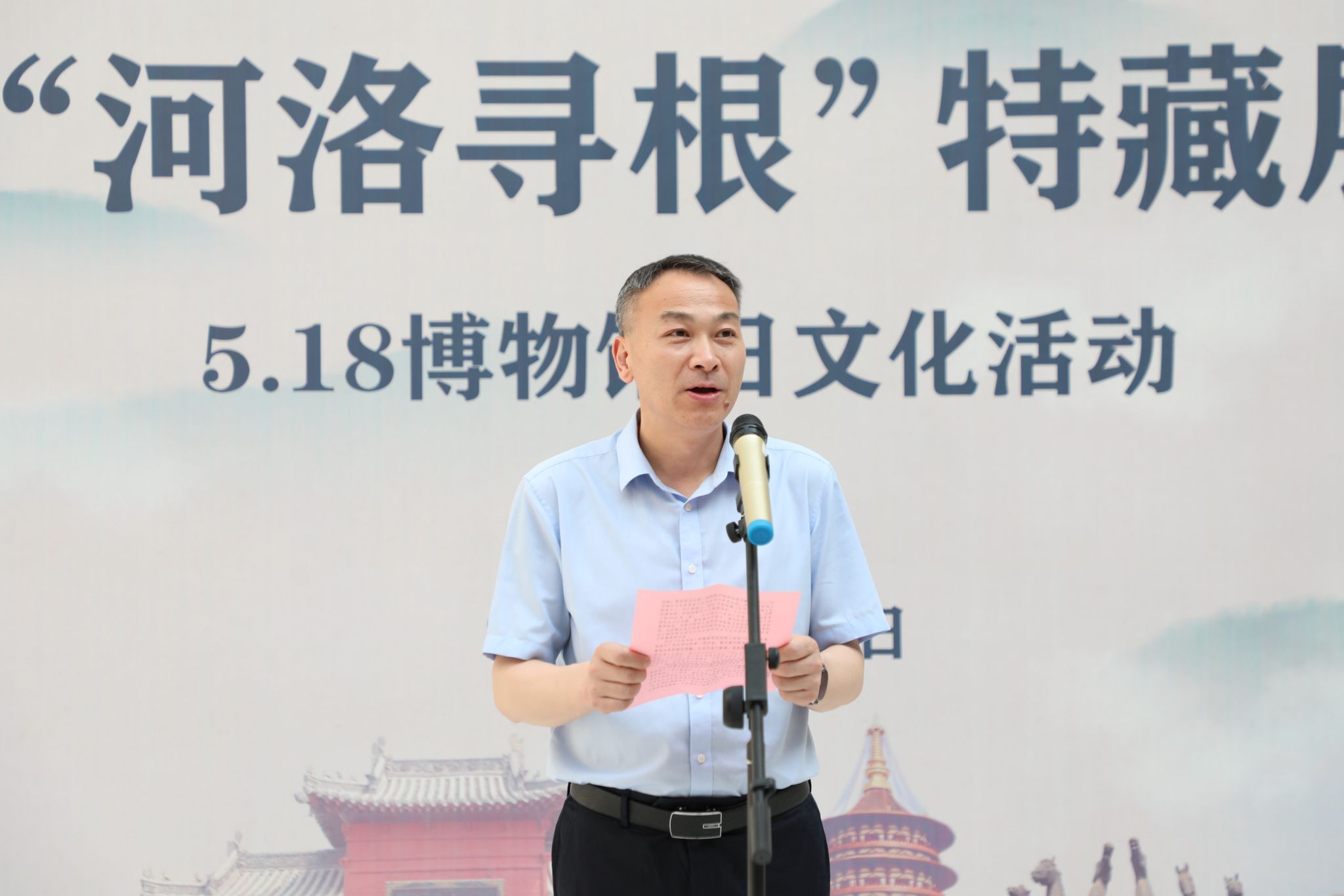 5月18日上午,在第47个国际博物馆日来临之际,我校隆重举行了“5·18国际博物馆日”青年城市论坛暨“河洛寻根”特藏展活动。洛阳市文物局党组成员、副局长仵荣全,洛阳市委宣传部四级调研员张宏波,洛阳市社科联副主席蔡幼鹏,共青团洛阳市委副书记秦卫红,洛阳古雒斋艺术博物馆馆长董延寿,洛阳民俗博物馆名誉馆长王支援,兄弟高校图书馆馆长,部分博物馆馆长,洛阳市非遗协会代表,博物馆系统优秀讲解员代表,我校党委副书记、工会主席曾涛,副校长马珺出席活动,相关职能部门及图书馆负责同志,学校青年志愿者代表参加了活动。
