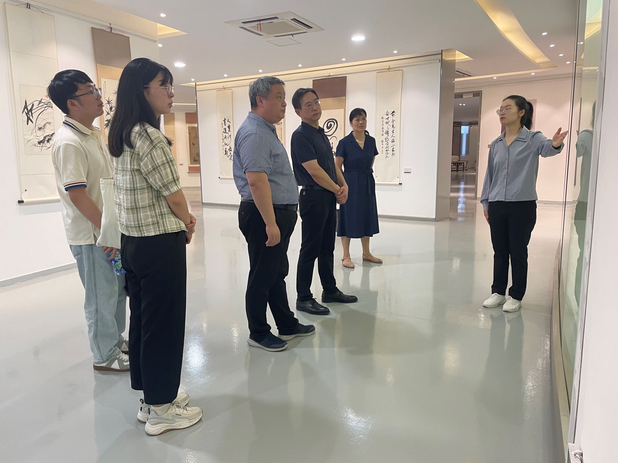 6月9日,省科协调研组一行4人在经济与管理学院院长冯超的陪同下到博物馆参观指导工作。图书馆副馆长张昕宇全程陪同,特藏部副主任王针臻、特藏部老师朱华丽、任洛汶参与了接待讲解工作。