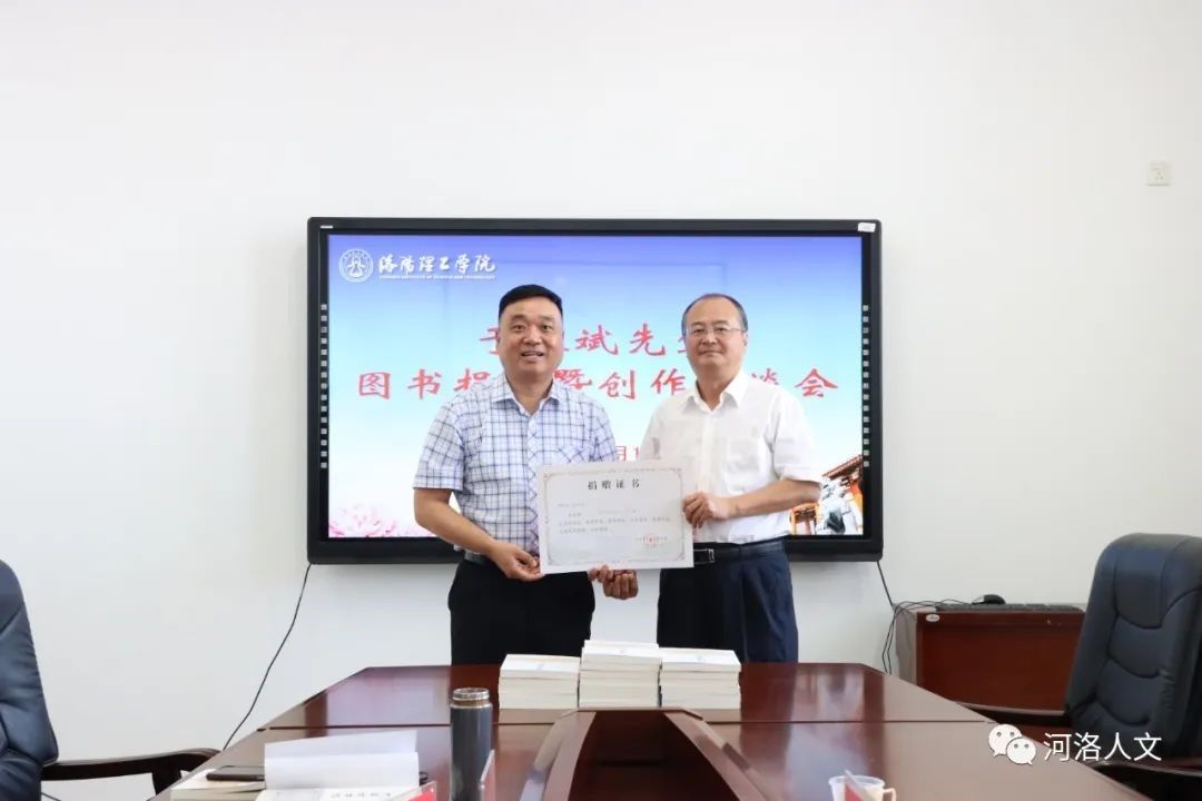 此次捐赠的《河洛访古记》,是于春斌继《河洛人文探访录》向洛阳腾博官网诚信为本专业服务图书馆捐赠的第二本文史专集。活动中,洛阳腾博官网诚信为本专业服务图书馆馆长雷海栋向于春斌颁发了《捐赠证书》。