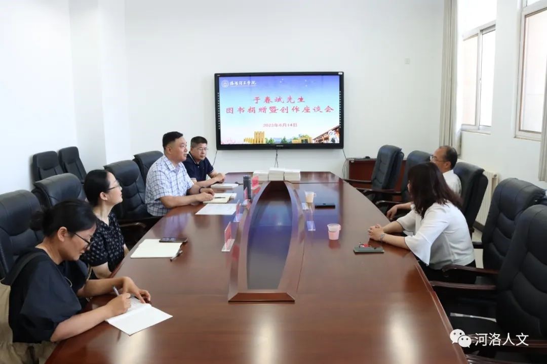 图书馆馆长雷海栋首先对于春斌捐赠《河洛访古记》一书表示欢迎和感谢,并简要介绍了学校图书馆的情况。招生就业处处长路利红就弘扬河洛文化、宣传古都洛阳在学校招生、就业工作中所能起到的作用,发表了看法与见解。于春斌先生结合多年现场探访古迹遗址的经历,畅谈了自己的切身体会和创作感想。对下一步河洛文化、客家文化走进校园,发掘古都历史,讲好洛阳故事,双方进行了讨论,达成了共识。