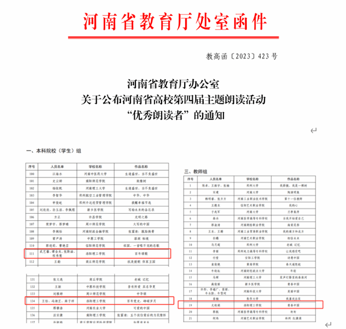 为落实省委书香河南建设的部署要求,推进全民阅读活动在高校深入开展,充分发挥高校图书馆育人功能,省教育厅委托河南省高等学校图书情报工作委员会举办了河南省高校第四届“奋进新征程·唱响新时代”主题朗读活动。本次活动分本科院校(学生)组、高职院校(学生)组、教师组三个组别。全省高校报名踊跃,共计51631位师生提交朗读作品。