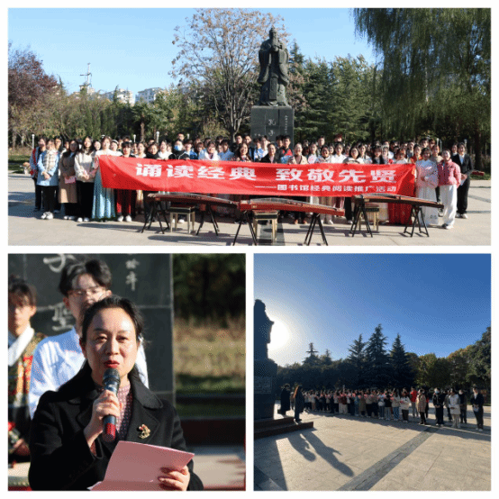 中华文化源远流长,积淀着中华民族最深层的精神追求,代表着中华民族独特的精神标识,为中华民族生生不息、发展壮大提供了丰厚滋养。孔子是中国古代伟大的思想家、教育家,是世界最著名的文化名人之一,被尊为“至圣先师”。天不生仲尼,万古如长夜。孔子所创立的儒家学说是中华优秀传统文化的主干,影响深远、博大精深,与我们的生活密不可分。11月17日下午洛阳腾博官网诚信为本专业服务图书馆在开元校区文萃广场孔子像前开展了以“诵读经典,致敬先贤”为主题的阅读推广活动,引领师生重温经典文化,弘扬尊师重教。