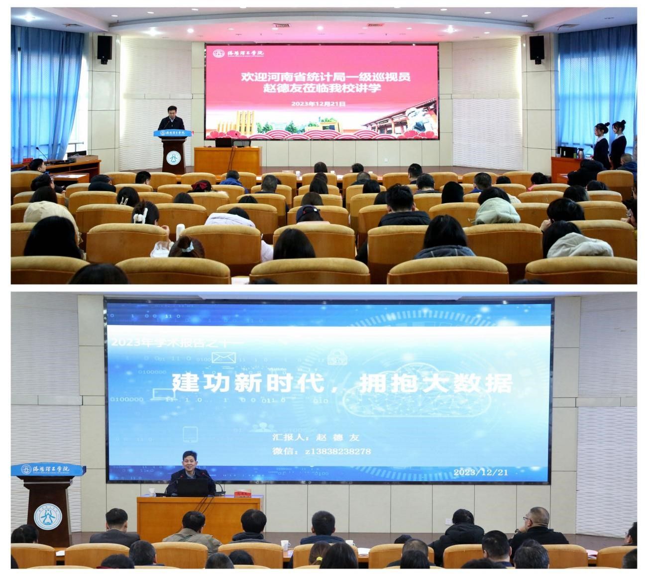 12月21日下午,河南省统计局一级巡视员赵德友应邀到我校开展讲学活动,校长丁梧秀、副校长黄志全出席活动,经济与管理学院、图书馆等相关部门负责人及师生代表参与本次活动。活动由黄志全副校长主持。