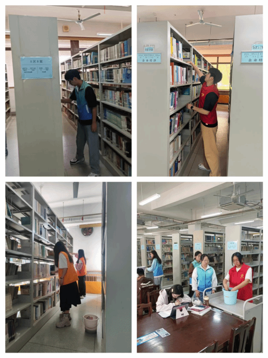 为满足广大读者对优质文献信息资源的需求,提升图书馆的管理服务质量,为读者提供一个更加整洁、高效的学习环境,五一劳动节期间,我校图书馆持续开放,提供不间断服务,开元校区图书馆邀请外国语学院、会计学院、教育科学与音乐学院的青年志愿者们参与了以环境整治和图书整理为主题的志愿服务活动。