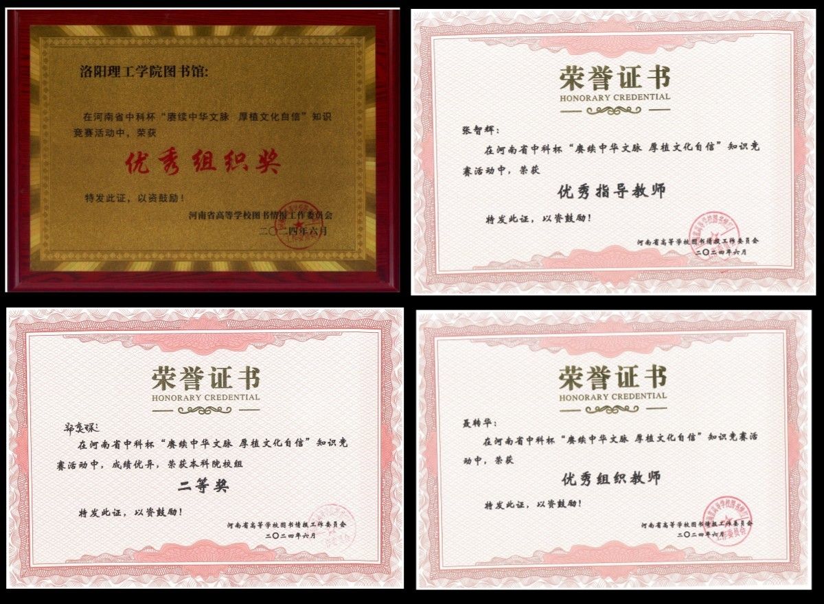 河南省“中科杯”知识竞赛决赛于6月7日在河南财经政法大学图书馆报告厅圆满举行。我校由图书馆副馆长褚艳红带队参加决赛。代表队凭借出色的表现和扎实的知识储备,取得了优异的成绩:教育与音乐学院学生郑奕琛荣获二等奖,张智辉荣获优秀指导教师奖,聂转华荣获优秀组织教师奖,图书馆荣获优秀组织单位。这一荣誉的获得,不仅彰显了我校学子的学术风采,也展现了我校在校园文化建设方面的卓越实力。