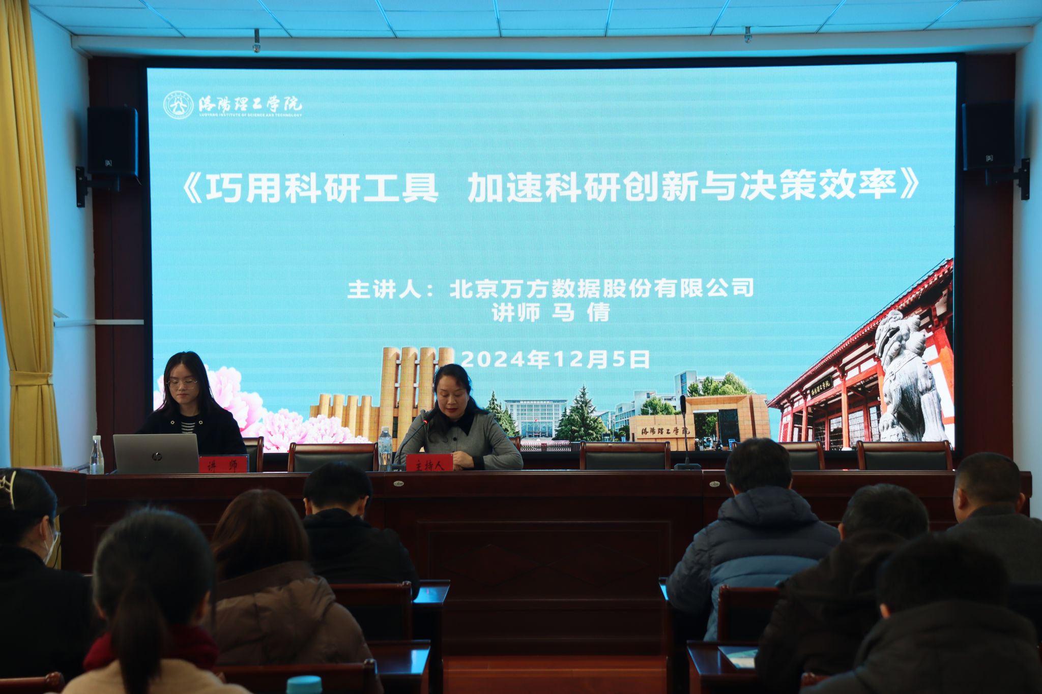 12月5日下午,图书馆在王城校区图书信息大楼501报告厅举办题为《巧用科研工具、加速科研创新与决策效率》的信息资源利用专题报告会。学校各二级学院(部)、相关职能部门、博士代表、联合培养研究生等约60余人参加,图书馆副馆长褚艳红主持报告会。