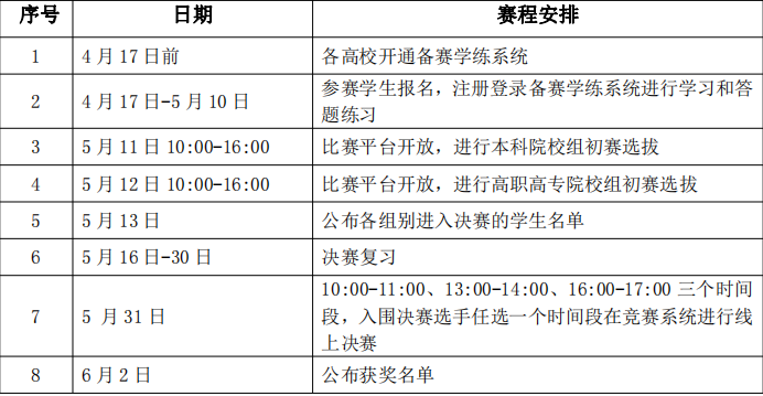 2.比赛分为初赛和决赛两个阶段,全部采取线上考试。