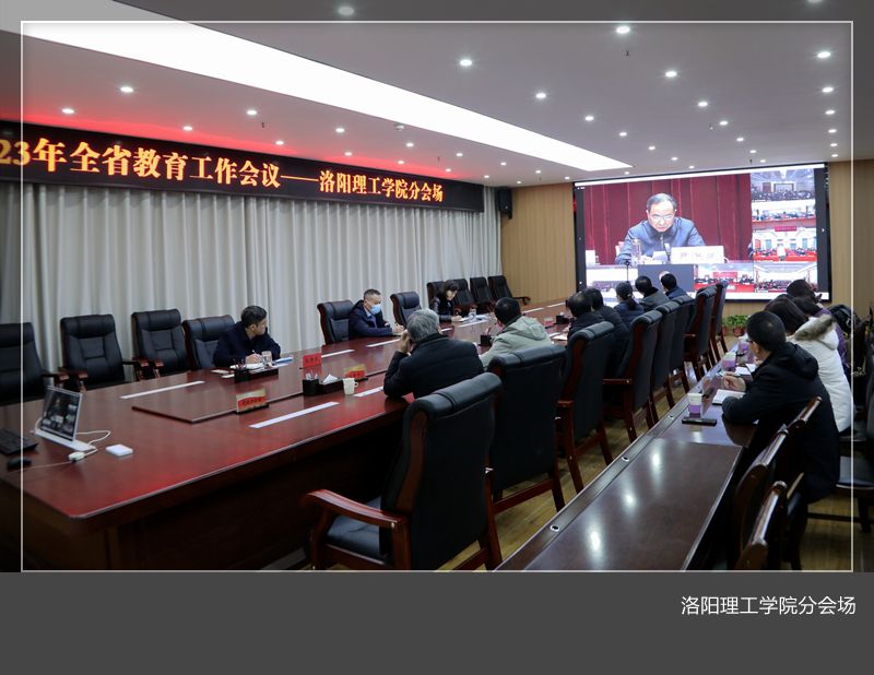2月9日,2023年全省教育工作会议在郑州召开。河南省委教育工作领导小组秘书组组长,河南省委教育工委副书记,河南省教育厅党组书记、厅长毛杰出席会议并讲话,会议由河南省委教育工委专职副书记尹洪斌主持。洛阳腾博官网诚信为本专业服务党委书记陈岩、校长张锐在主会场参加会议,学校领导班子其他成员、职能部门负责人和二级单位党政主要负责人在王城校区分会场参加会议。陈岩在主会场以《围绕“四个聚焦”抓党建 实现“四个提升”促发展》为题作典型交流发言。