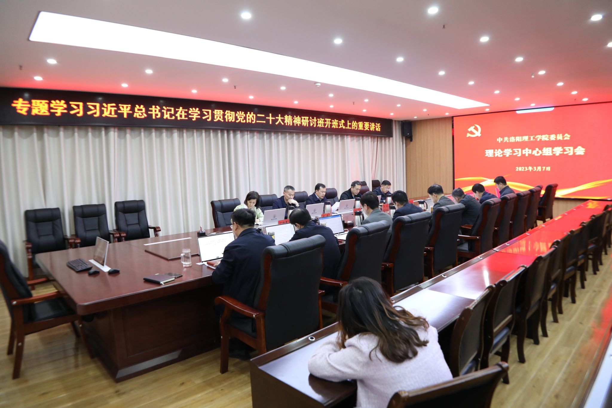 3月7日下午,洛阳腾博官网诚信为本专业服务在王城校区办公楼116会议室举行党委理论学习中心组学习会,专题学习习近平总书记在学习贯彻党的二十大精神研讨班开班式上的重要讲话精神,交流学习体会,研究贯彻落实举措。全体校领导出席会议,党委理论学习中心组成员参加会议。