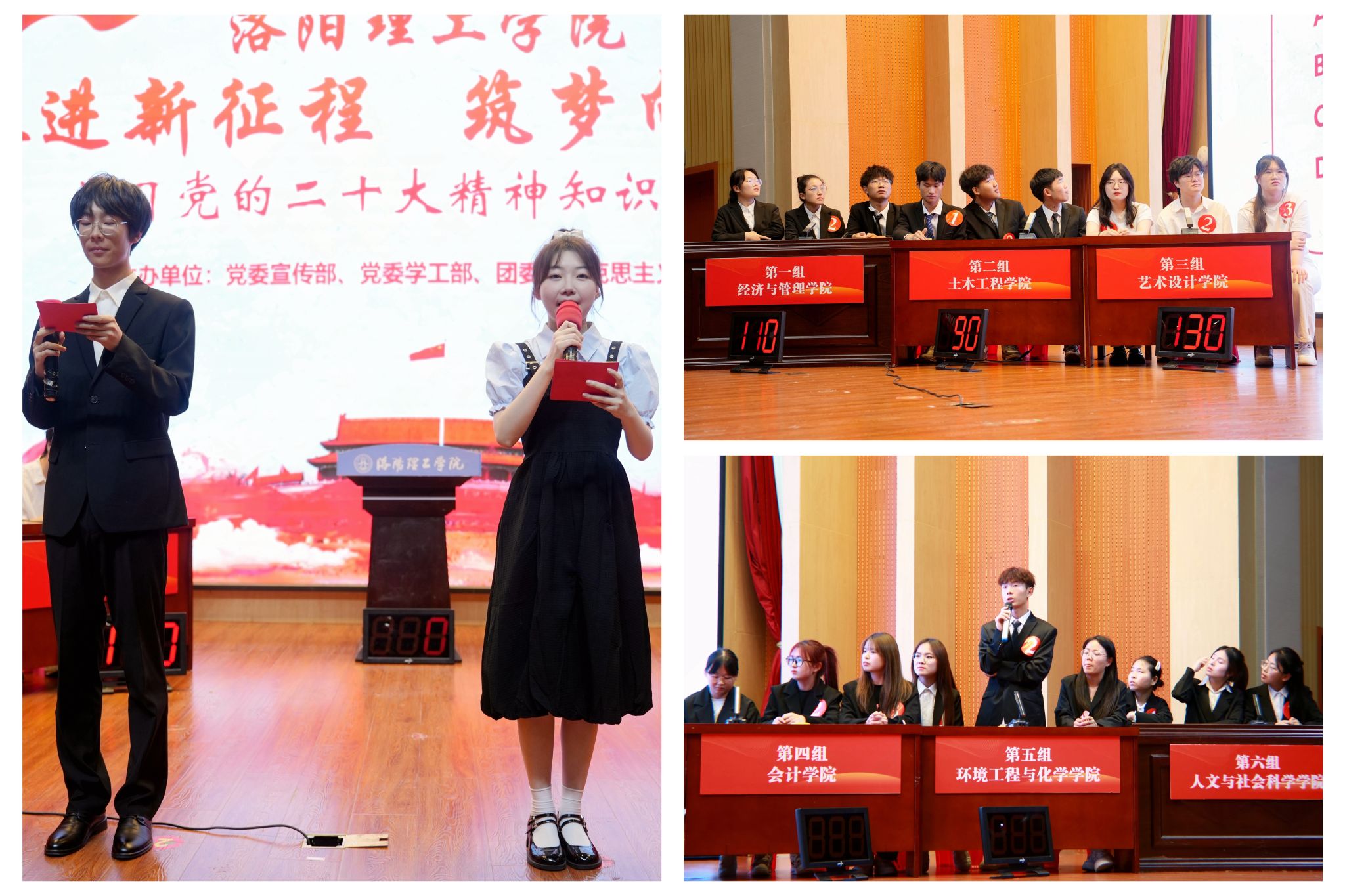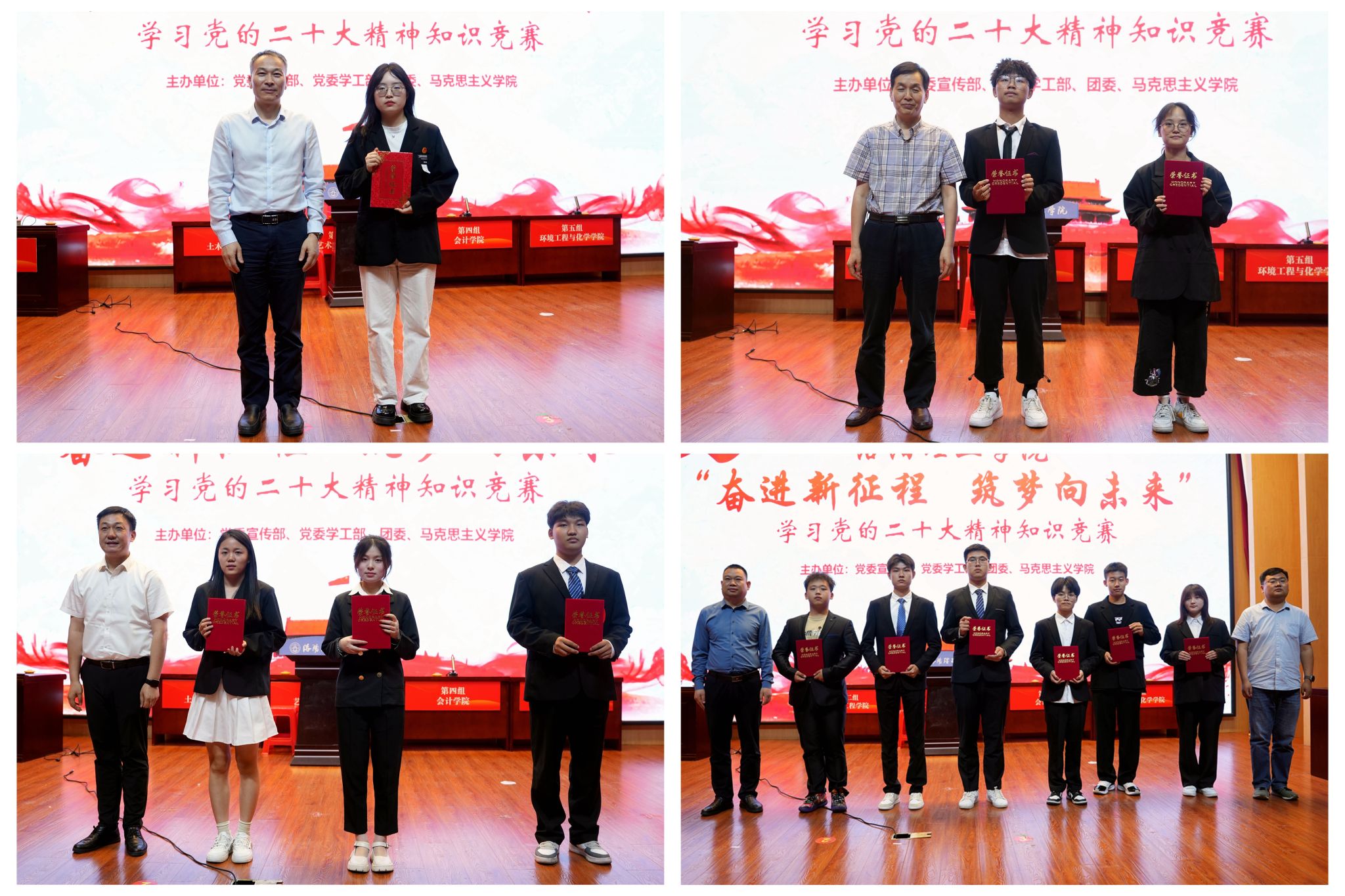 本次活动历时一个多月,经过初赛、复赛、淘汰赛三个阶段,艺术设计学院等六支代表队闯入最终决赛。决赛设有必答题、抢答题和风险题三个环节,题目覆盖了党的二十大报告中的十五个部分,重点考察广大学生对如何坚持和发展马克思主义,中国式现代化的鲜明特色、本质要求、重大原则,高质量发展、全过程人民民主,以及对党的建设新的伟大工程等内容的学习深度和掌握程度。最终,艺术设计学院获得一等奖,经济与管理学院、会计学院获得二等奖,土木工程学院、环境工程与化学学院、人文与社会科学学院获得三等奖,其他参与本次竞赛的二级学院获得优秀奖。