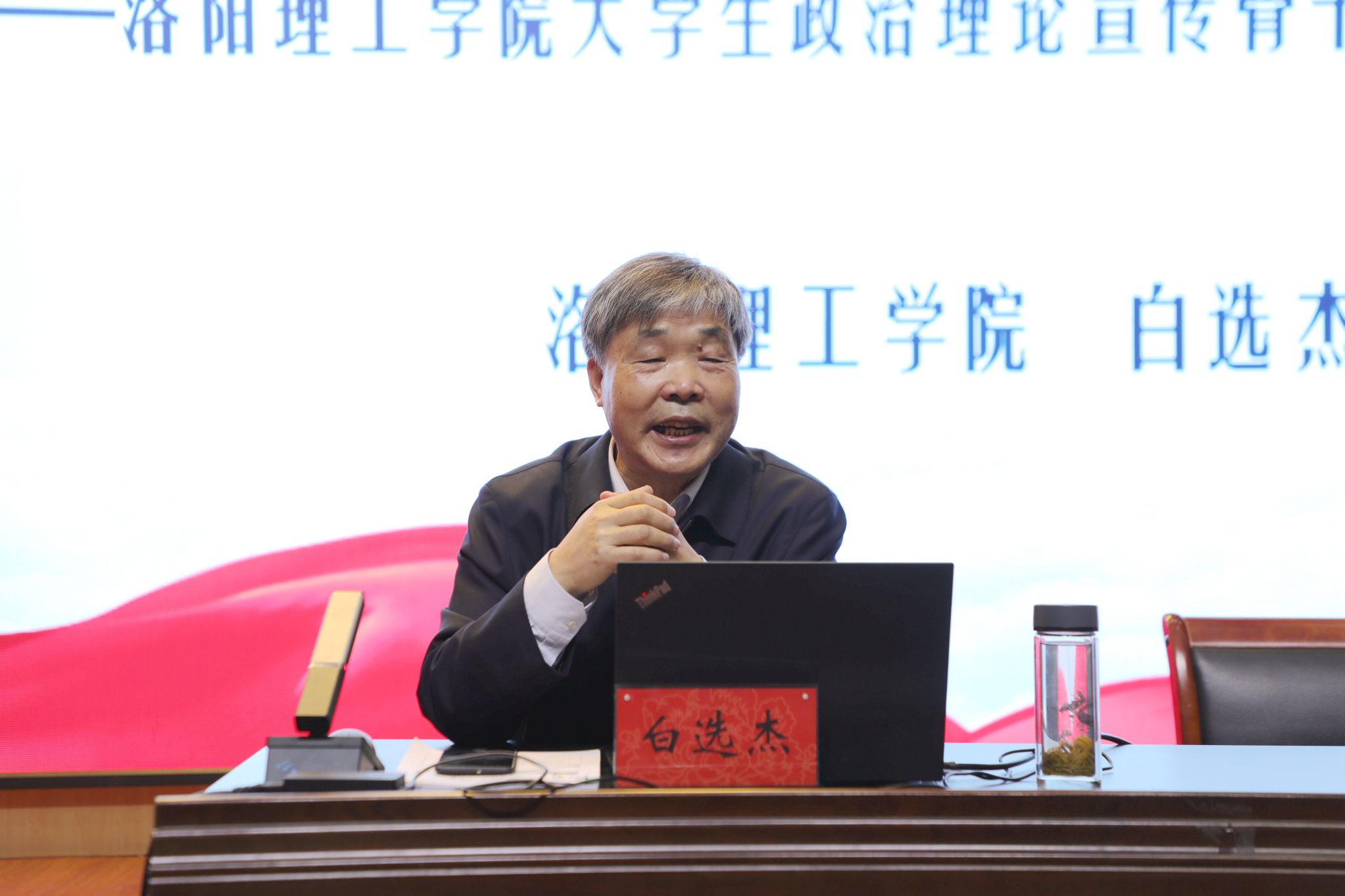 河南省青少年德育优秀宣讲专家、洛阳市委宣讲团成员、我校退休教师白选杰教授作党的二十大精神专题报告