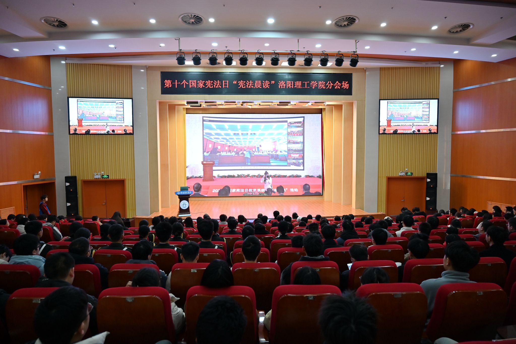 2023年12月4日是我国第十个国家宪法日。为深入学习贯彻党的二十大精神,学习宣传习近平新时代中国特色社会主义思想,特别是习近平法治思想、习近平文化思想、宪法、社会主义法治文化以及党的十八大以来全面依法治国取得的成就,根据中宣部、司法部、全国普法办、省教育厅的工作要求,当日上午,我校在王城校区图书信息中心报告厅举办了第十个宪法日“宪法晨读”活动。学校党委宣传部、党委学工部等相关部门负责人,灯塔研习社、国旗护卫队、各二级学院学生代表,共计500余名师生代表参加了活动。