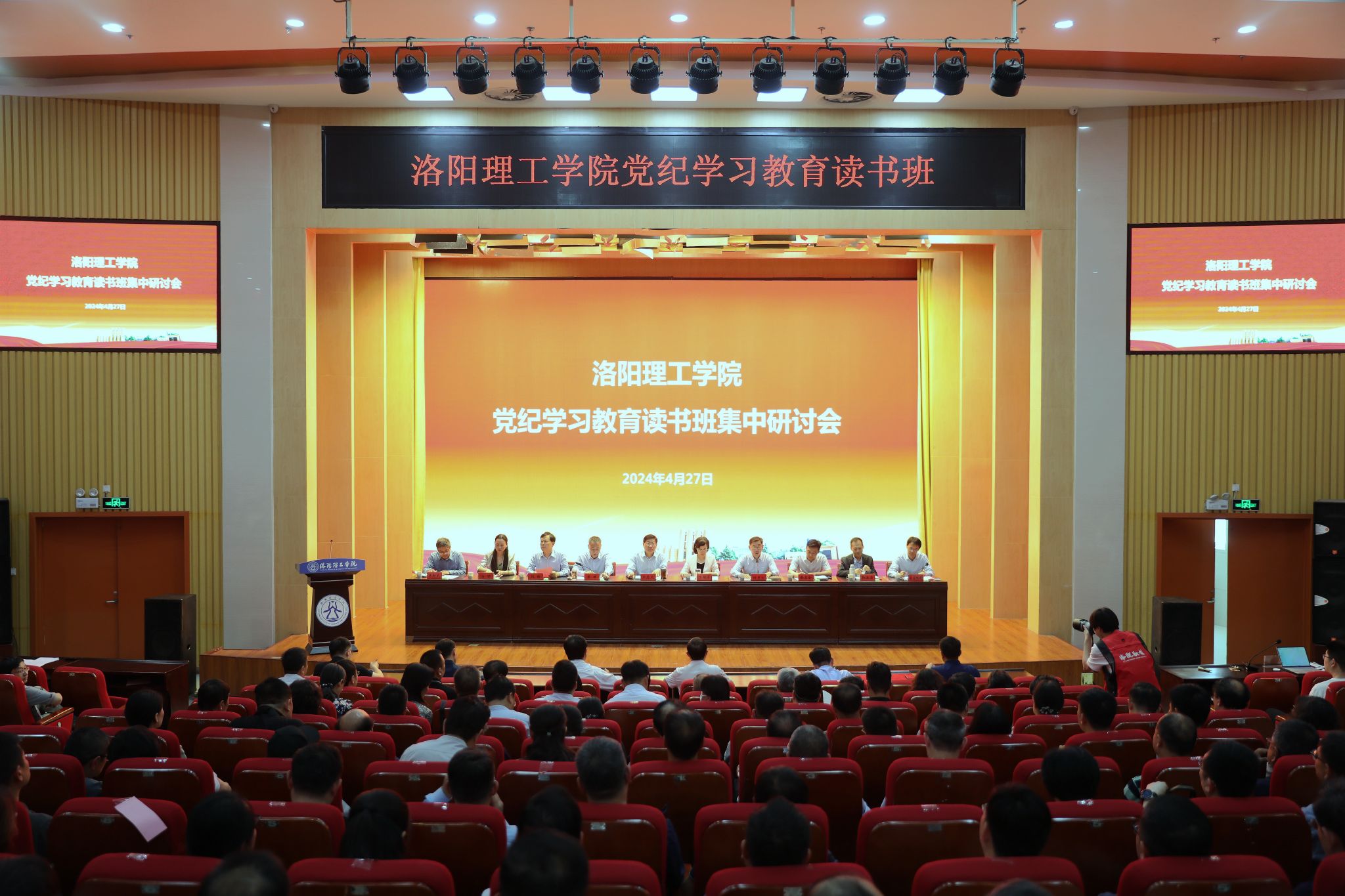 在有步骤进行书记领学、专题辅导、个人自学后,4月27日下午,我校党纪学习教育读书班集中研讨会在王城校区图书信息中心报告厅举行。校领导卢志文、丁梧秀、曾涛、胡恩立、刘楠、黄志全、马珺、韩洪涛、王新武、上官林建出席,全校副处级以上中层干部及党支部书记参加。集中研讨会由党委副书记胡恩立主持。