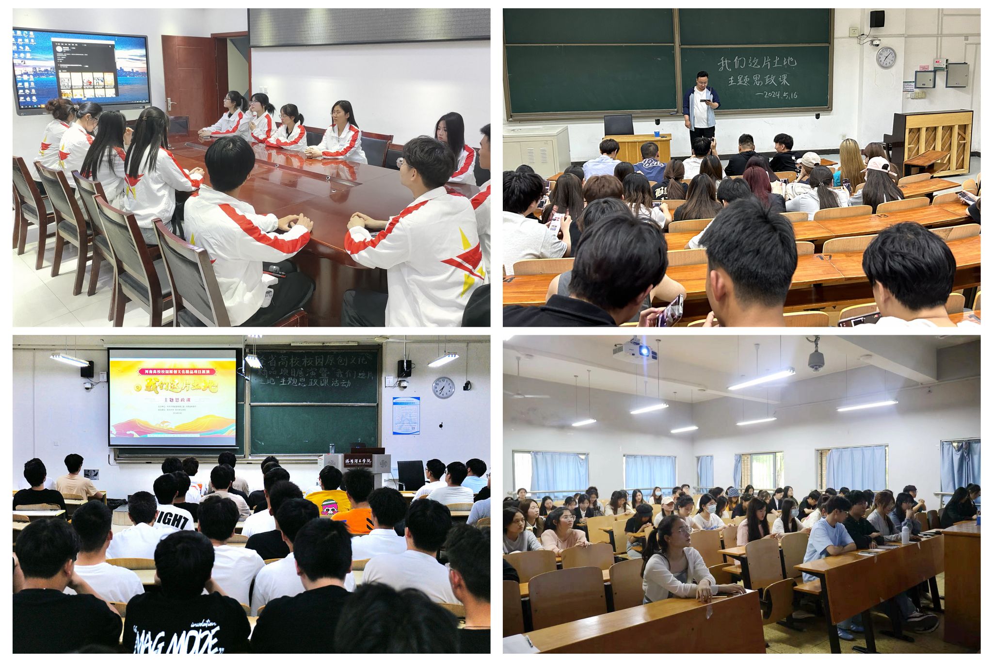 为深入学习宣传贯彻习近平文化思想,深化转化习近平新时代中国特色社会主义思想主题教育成果,推动落实“时代新人铸魂工程”,我校于5月16日晚,采用集中观看和分散学习相结合的形式组织全校师生观看河南高校校园原创文化精品项目展演暨“我们这片土地”主题思政课直播。