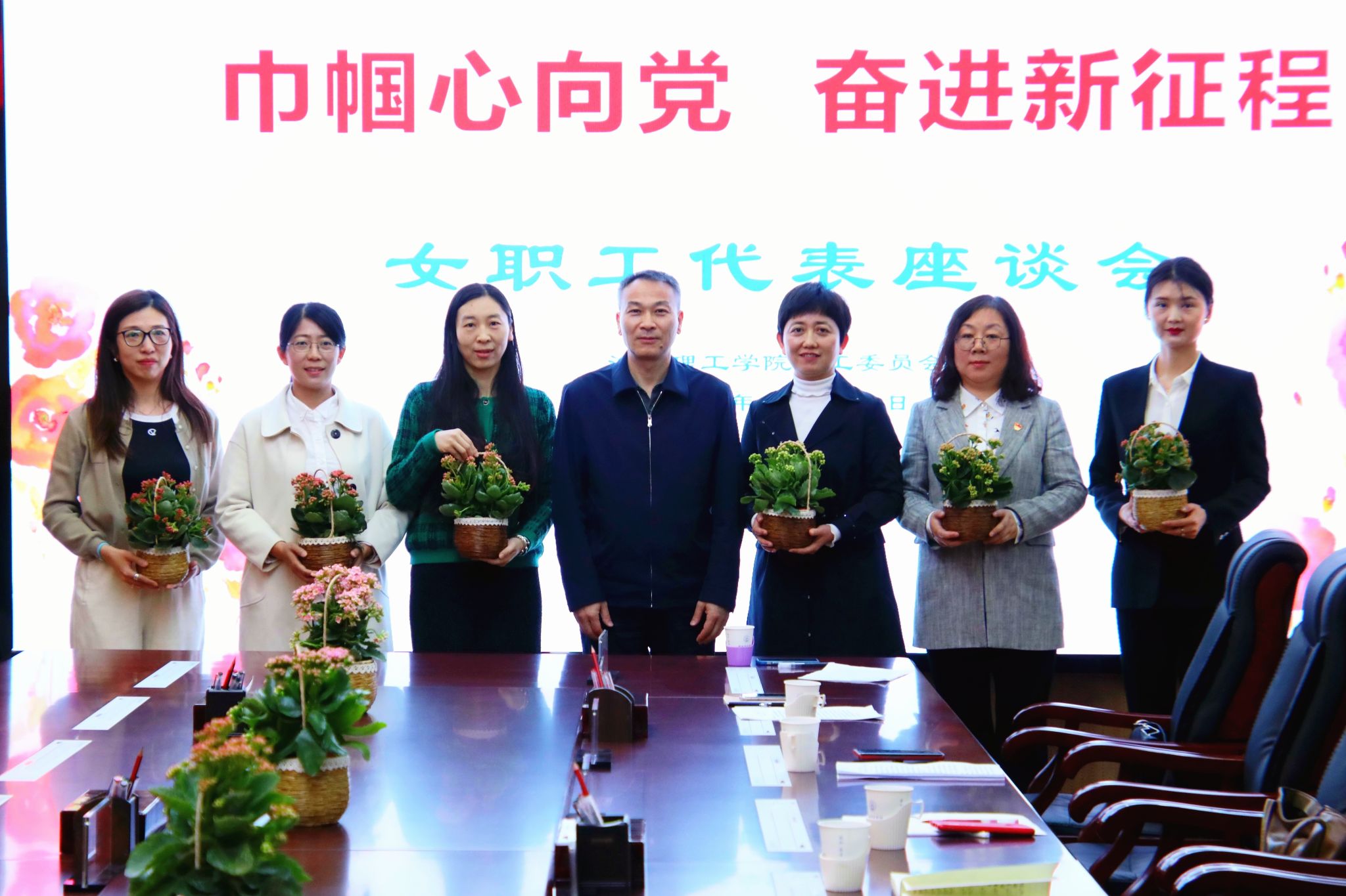 校党委副书记、工会主席曾涛代表学校向女职工代表送上节日花篮