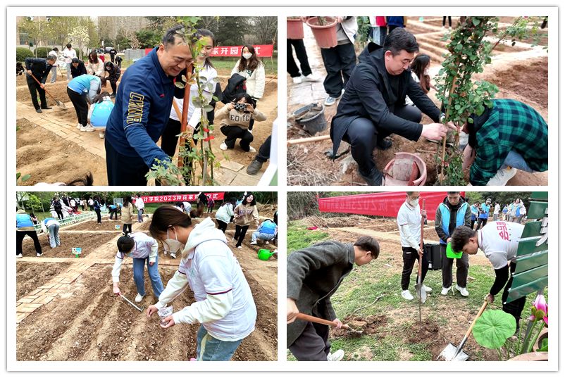 现场师生们共同拿起工具,播撒太阳花、菊花、向日葵种子10000余粒,栽下月季与蔷薇50余株,共同播种下新的希望,期待明天新的收获。
