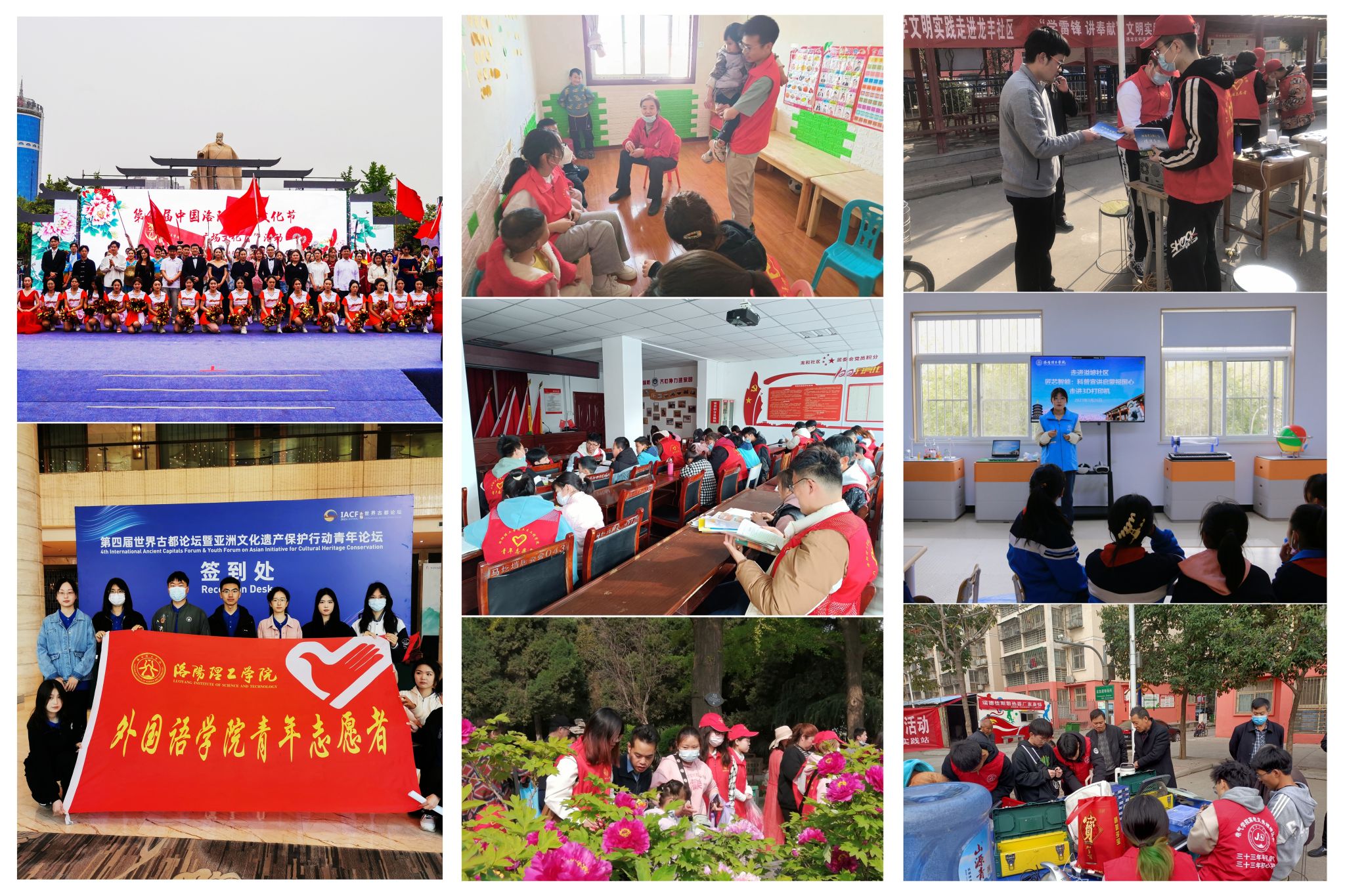 为学习贯彻习近平新时代中国特色社会主义思想,深入推进我校文明校园建设,弘扬奉献、友爱、互助、进步的志愿服务精神,3月至5月,我校积极开展了丰富多彩的系列志愿服务活动,以“耀金、注红、尊银、护绿、善橙”五个模块为重点,分别致力于“专场文化演出、文明引导、关爱老人、美好家园共建、助力青少年成长”等志愿服务,广泛践行社会主义核心价值观,切实为第40届中国洛阳牡丹文化节的顺利举办奉献爱心,提供优质、高效的志愿服务,为文明洛阳贡献我校省级文明校园标兵力量。