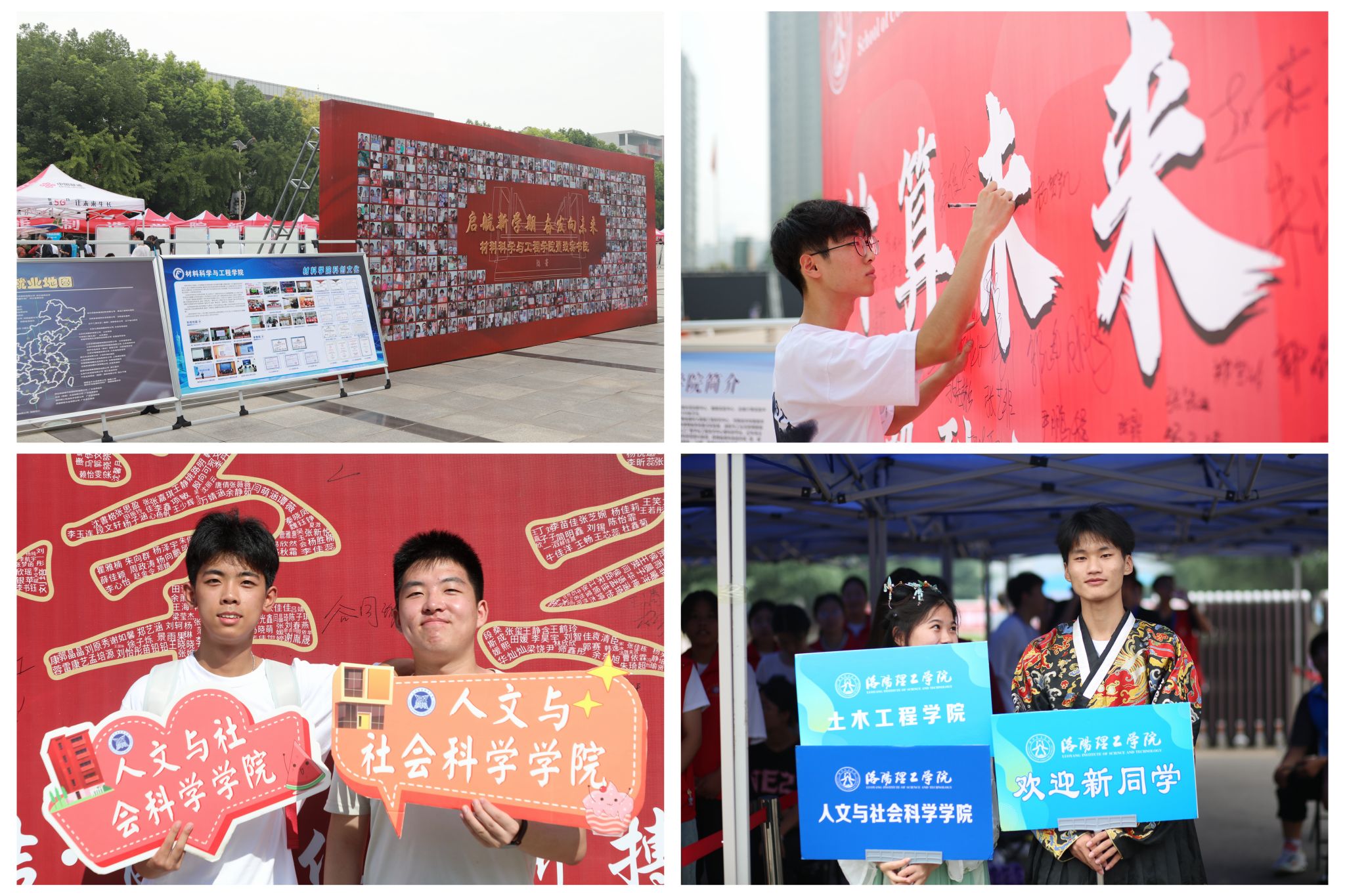阳光明媚,秋风爽朗,又是一年开学季,洛阳腾博官网诚信为本专业服务的校门前、广场上人山人海,新同学、新生家长、工作人员、志愿者……熙熙攘攘,一派繁忙的景象。所有工作人员各司其职,站好迎新这班岗,帮助新生顺利入校。迎新帐篷下,学长学姐热情地迎接着新同学,各个学院创新思路,用不同方式展示学生活力,展现青年巧思,体现校园风采。