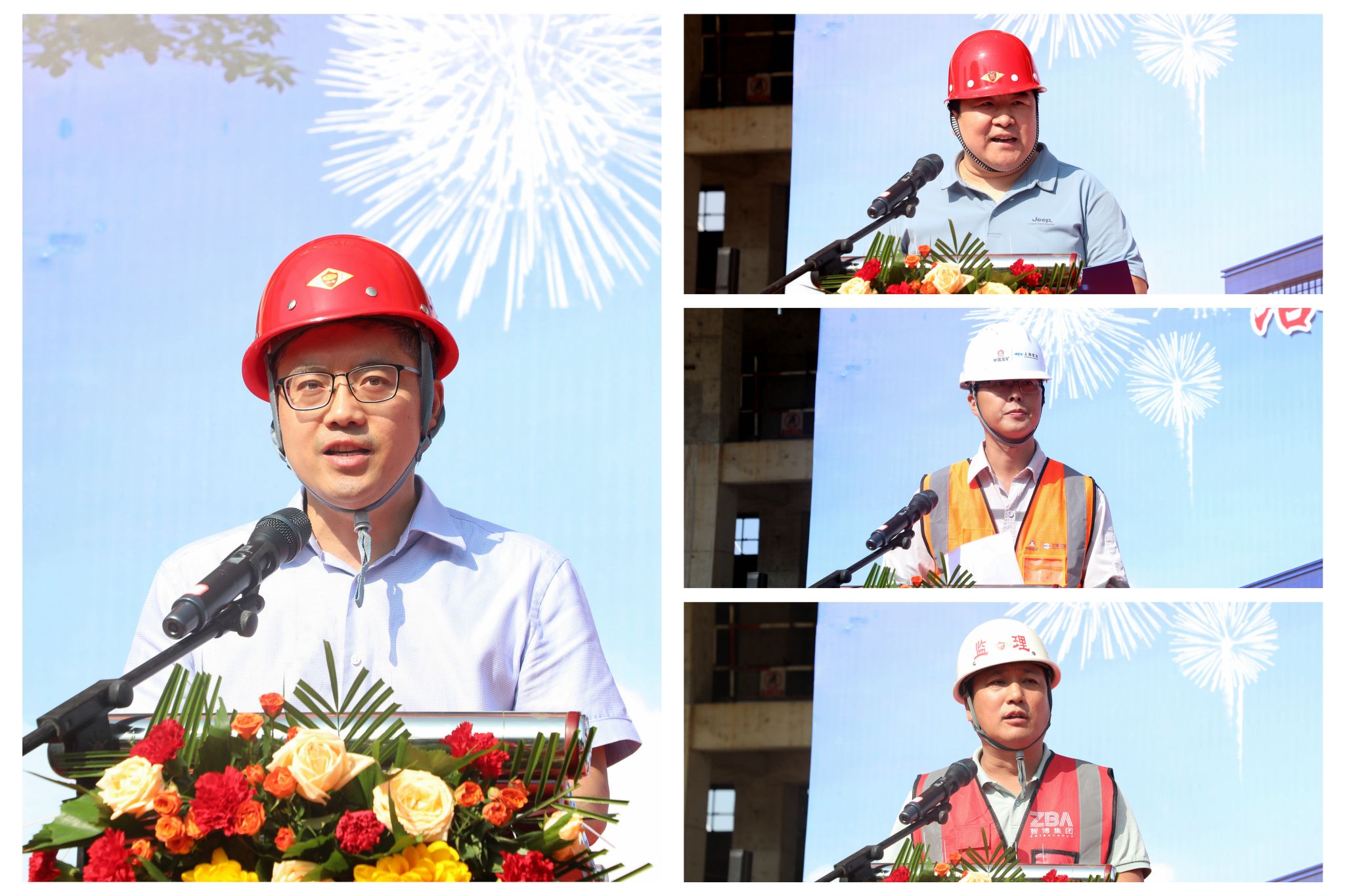 副校长王新武在致辞中对出席仪式的各位领导、来宾表示热烈欢迎,向参与项目设计、施工、监理等单位及学校相关管理服务部门的全体建设者们表示热烈祝贺和衷心感谢,对建设项目的顺利封顶表示热烈祝贺。他指出,智能化绿色建材工程实训中心项目包括了建材大数据协同中心、元宇宙协同创新中心、薄膜电子与集成器件实验室等建设内容,这一项目是学校党委行政谋划特色发展、建设高水平应用型大学建设的重要举措,是十四五时期学校基本建设工作的重要工程。校内相关部门和建设、监理单位要协调合作,紧盯施工蓝图,在施工安全上下功夫、在施工速度上下功夫、在施工质量上下功夫,确保工程如期竣工,努力把该项目打造成新时代教育领域现代化、智能化人工建筑物的典范工程。