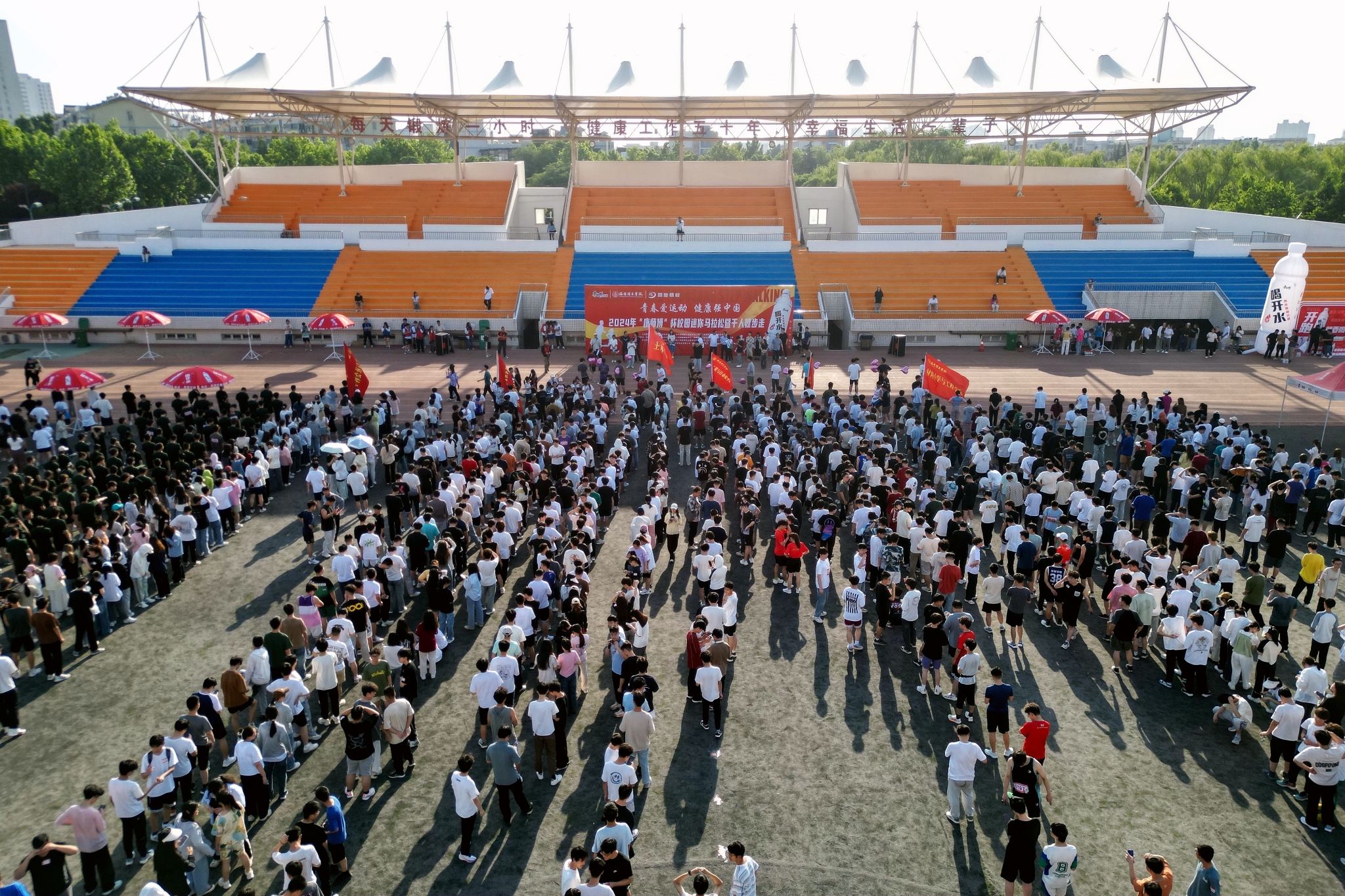 5月16日下午,我校在王城校区举行2024年“校园迷你马拉松暨千人健步走”活动。全校近5000名学生参与本次活动。