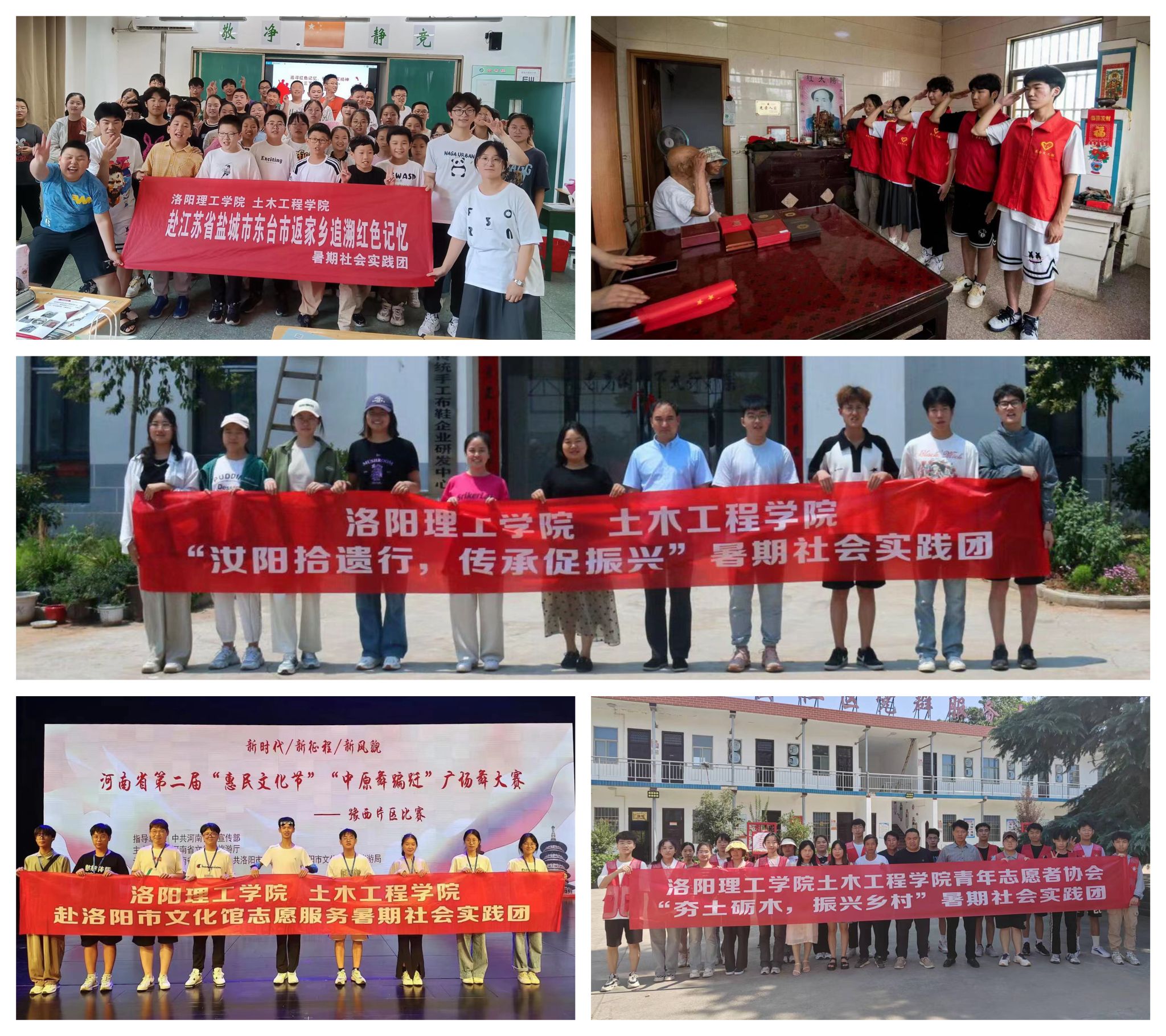 7月1日“星火溯源行动队”暑期实践团前往开封市兰考县,深入了解当地红色革命遗址,学习焦裕禄同志的奋斗故事。通过了解焦裕禄同志“亲民爱民、艰苦奋斗、科学求实、迎难而上、无私奉献”的伟大精神,团队成员表示将继承和弘扬红色精神,为实现强国建设、民族复兴贡献力量。关爱空巢老人社会实践团队前往安徽省怀宁县三岭村,关爱空巢老人。通过播放防诈骗短视频和进行亲切的交流互动,团队成员传递了尊老敬老的传统美德,让孝亲爱老蔚然成风。