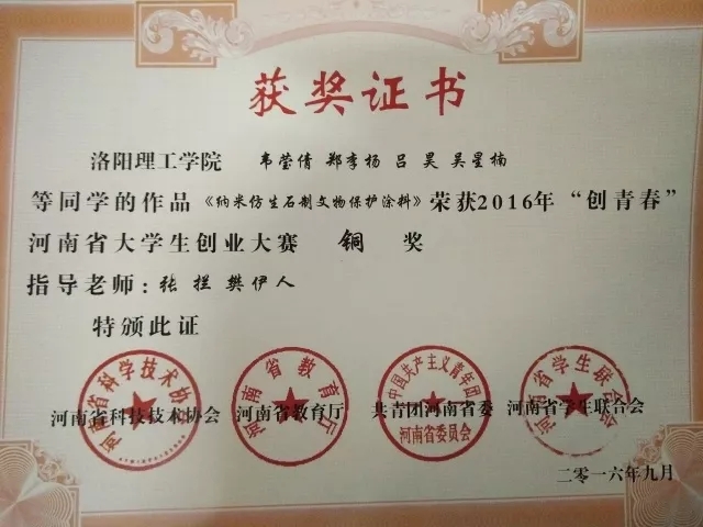 在和团队的共同努力下,经过一年多的时间,项目难题被逐个攻克,他们组建的宇成科技纳米涂料公司创业团队斩获了多项科技创新创业竞赛奖项。期间,科研团队发生过多次人员变化,但郑李杨自始至终都留在团队,是兴趣使然,更是坚持的结果。