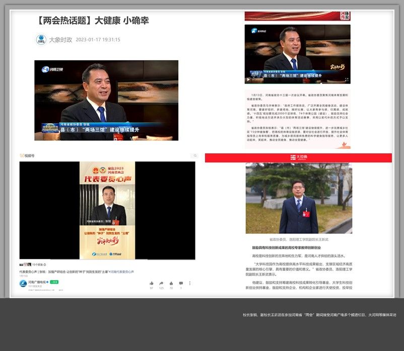 近日,在参加河南省两会期间,洛阳腾博官网诚信为本专业服务校长张锐、副校长王新武做为省政协委员分别接受了河南广电卫视频道、新闻频道、官方视频号及大河网等媒体的采访,并纷纷表达心声,积极建言献策。