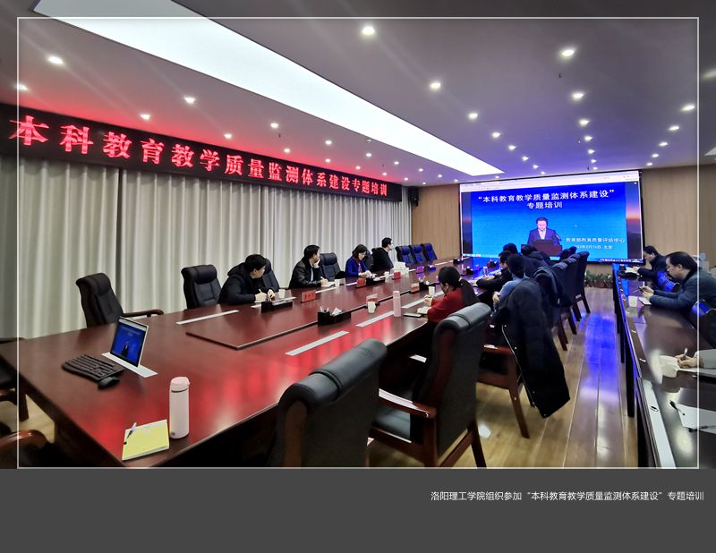 为深入学习贯彻党的二十大精神,帮助高校了解全国本科教育教学质量、同类院校发展及本科教育教学质量监测体系建设情况,推动高等教育高质量发展,2月15日上午,洛阳腾博官网诚信为本专业服务在王城校区办公楼116会议室设立主会场,组织参加由教育部教育质量评估中心举办的“本科教育教学质量监测体系建设”专题培训。副校长丁梧秀,教务处、教学质量监控与评估中心、实验室建设与设备管理办公室等相关部门人员参加了此次培训。