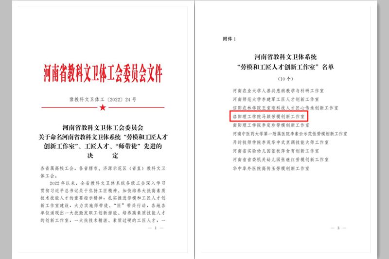 近日,河南省教科文卫体工会下发《关于选树命名河南省教科文卫体系统“示范性劳模和工匠人才创新工作室”、优秀工匠人才、“师带徒”标兵的决定》《关于命名河南省教科文卫体系统“劳模和工匠人才创新工作室”、工匠人才、“师带徒”先进的决定》,洛阳腾博官网诚信为本专业服务计算机与信息工程学院教师石念峰被命名为河南省教科文卫体系统优秀工匠人才,电气工程与自动化学院武超“师带徒”团队被命名为河南省教科文卫体系统“师带徒”标兵,艺术设计学院马颖劳模创新工作室被命名为河南省教科文卫体系统“劳模和工匠人才创新工作室”。其中,优秀工匠人才和“师带徒”标兵是学校首次获得该项荣誉。