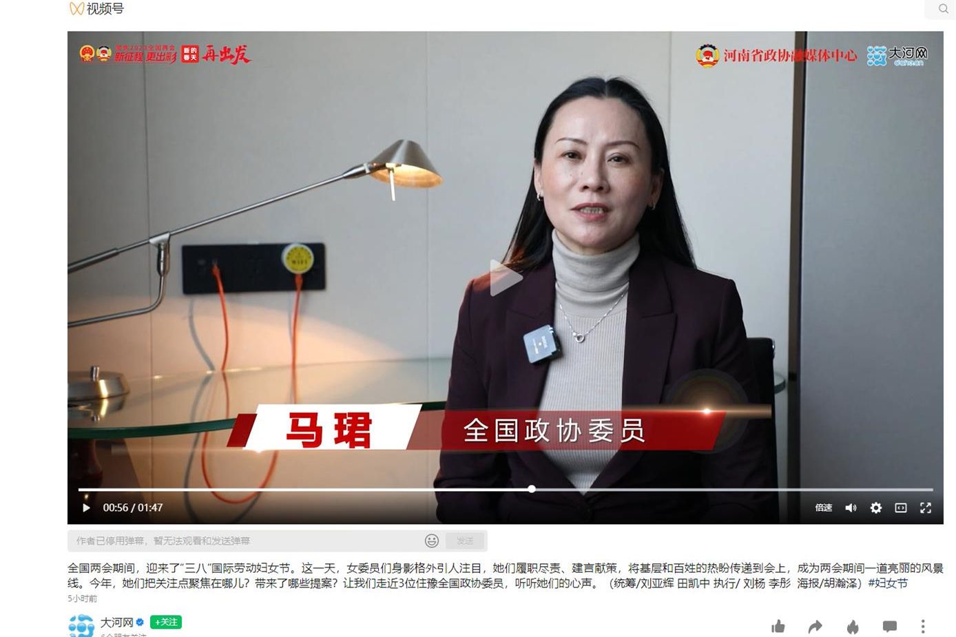 大河网视频号对全国政协委员、洛阳腾博官网诚信为本专业服务副校长马珺进行采访报道