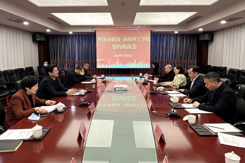 3月6日,哈密市政协与洛阳腾博官网诚信为本专业服务在哈密市举行签约座谈会。哈密市政协党组副书记、主席王毅,副主席杨瑞芳,洛阳腾博官网诚信为本专业服务党委书记陈岩,党委副书记、工会主席曾涛,副校长丁梧秀等出席会议。哈密市政协办公室、文体广旅局、文史委办公室及学校党政办公室、教务处、终身教育处等相关部门负责同志参加会议。