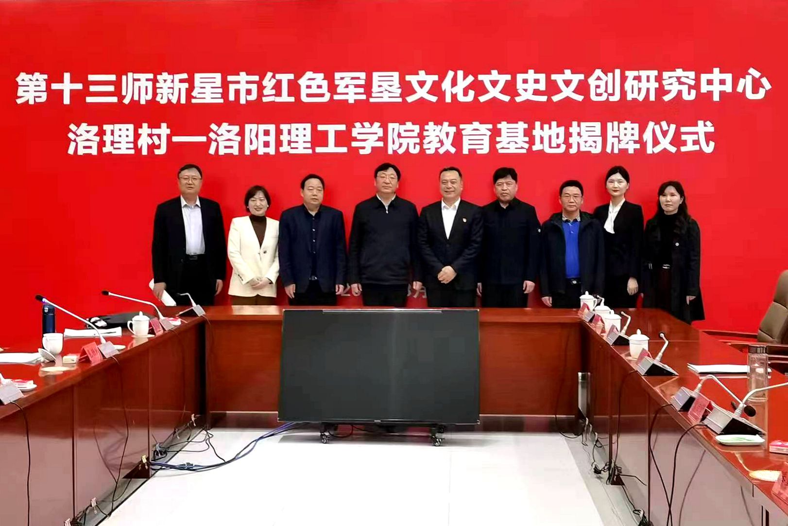 3月20日,我校援疆平台“第十三师新星市红色军垦文化文史文创研究中心暨洛理村—洛阳腾博官网诚信为本专业服务教育基地”在新星市人民政府举行揭牌仪式。校长张锐,第十三师党委常委、副师长朱自锋出席仪式,师市相关领导专家参加仪式。揭牌仪式由第十三师副政委潘朝印主持。