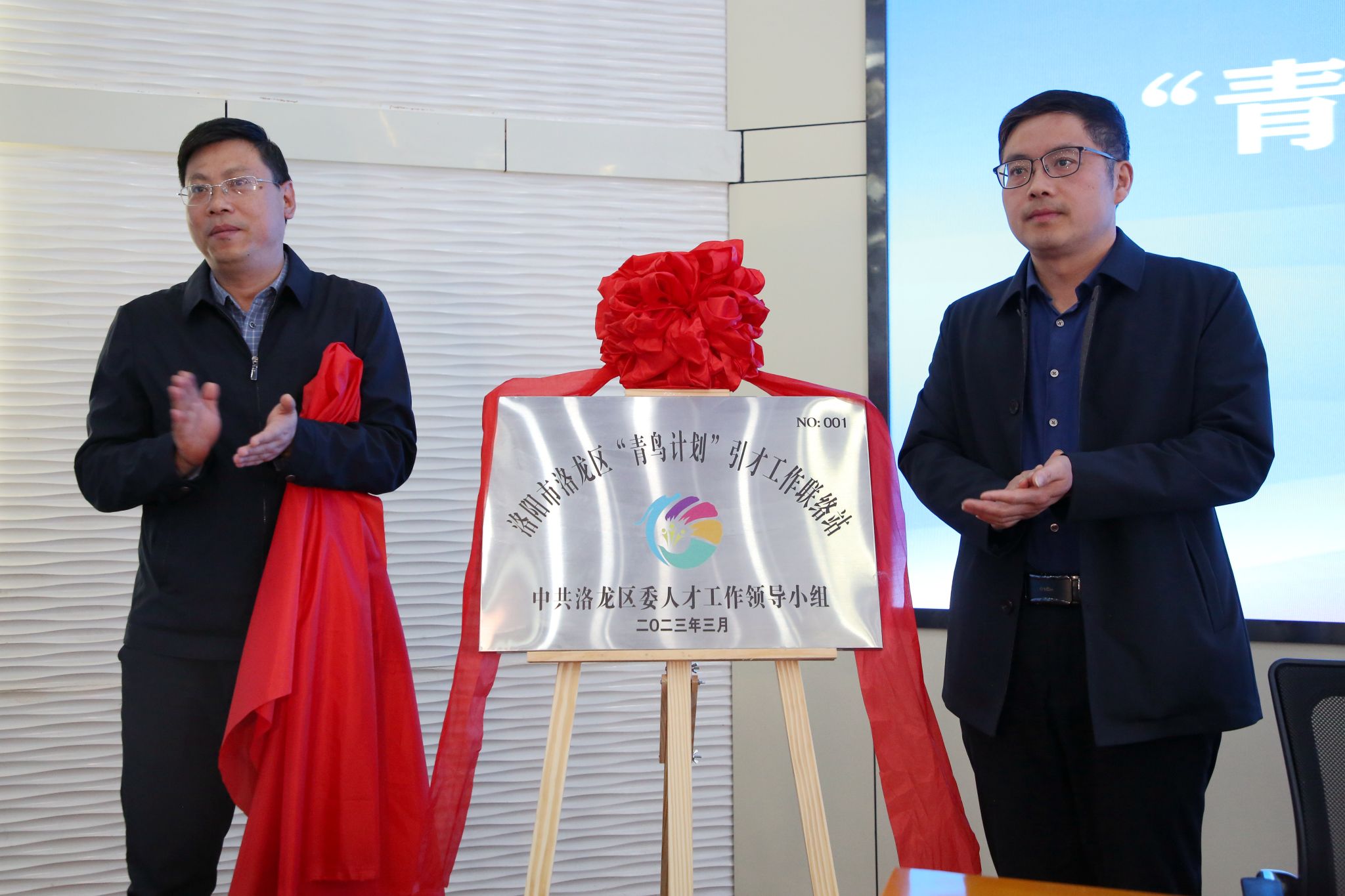 仪式上,双方代表签订了洛龙区“青鸟计划”引才联络站合作协议,胡贵生、王新武共同为“青鸟计划”引才联络站揭牌。